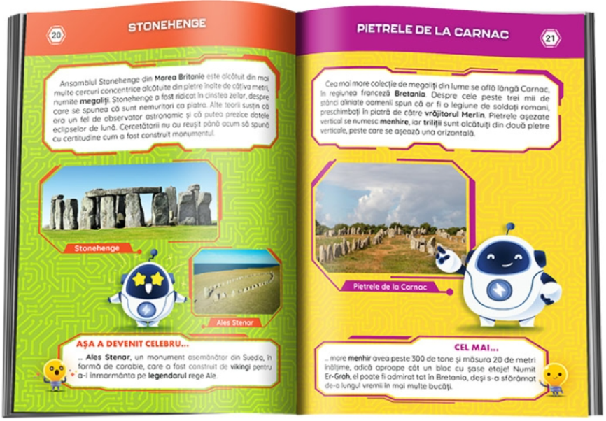 Secțiunile Cel mai..., Așa a devenit celebru..., Legenda spune că..., Află că... și Știai că... conțin câteva dintre cele mai captivante curiozități cu care îți vei da pe spate colegii, prietenii, ba poate chiar și profesorii!