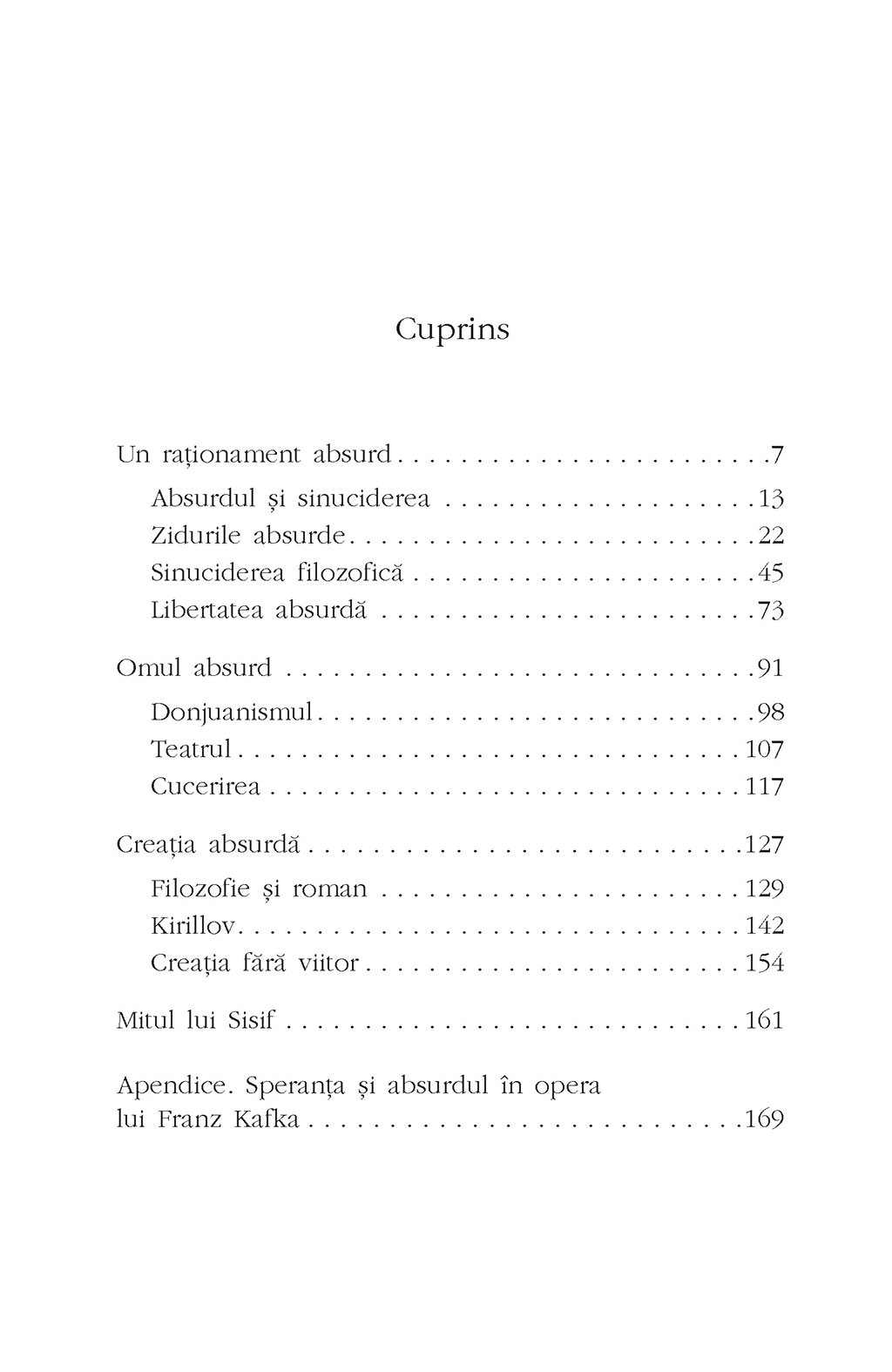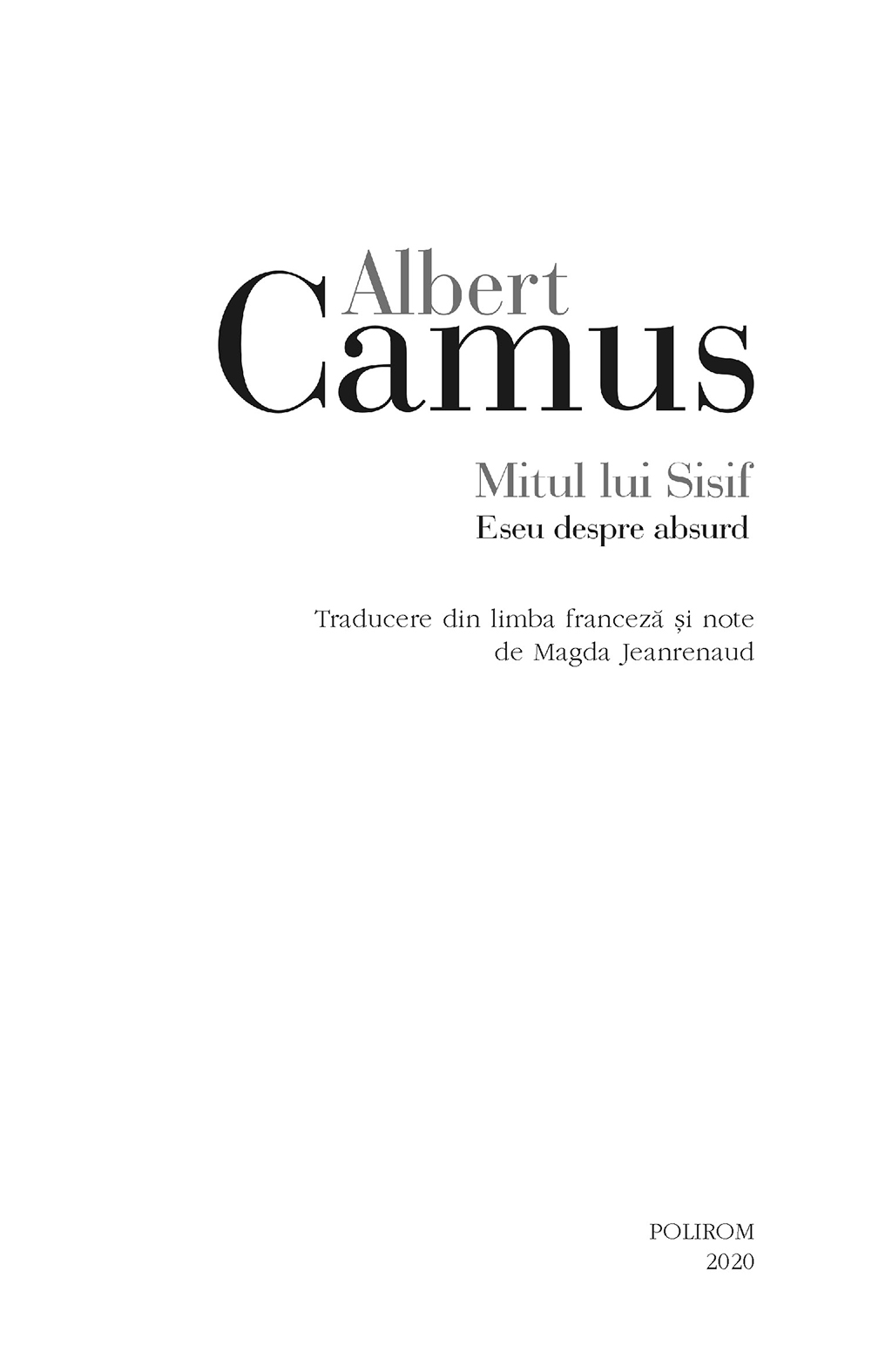Ce sens are o viaţă de om cînd lumea însăşi se dovedeşte lipsită de sens? Publicat în timpul celui de-al Doilea Război Mondial şi devenit una dintre cele mai marcante opere ale secolului XX, Mitul lui Sisif este o căutare filozofică a unui răspuns la întrebarea epocii şi o expunere magistrală a teoriei absurdului, pe care Albert Camus a dezvoltat-o în toată opera sa, despărţindu-se de ideile nihiliste şi existenţialiste din perioadă, cu care a fost asociat în nenumărate rînduri. Pornind de la o meditaţie asupra sinuciderii ca răspuns la întrebarea dacă viaţa merită sau nu trăită, Camus îşi poartă cititorul într-o explorare a ideilor moderne despre condiţia umană – de la Nietzsche şi Kierkegaard la Dostoievski şi Kafka –, la capătul căreia omul modern, copleşit de angoasă şi oglindit exemplar în figura tulburătoare a damnatului Sisif, va descoperi calea şi singurul sens de a trăi în această lume fără sens – revolta, libertatea şi pasiunea vieţii prin conştientizarea şi îmbrăţişarea absurdului ce guvernează întreaga existenţă.