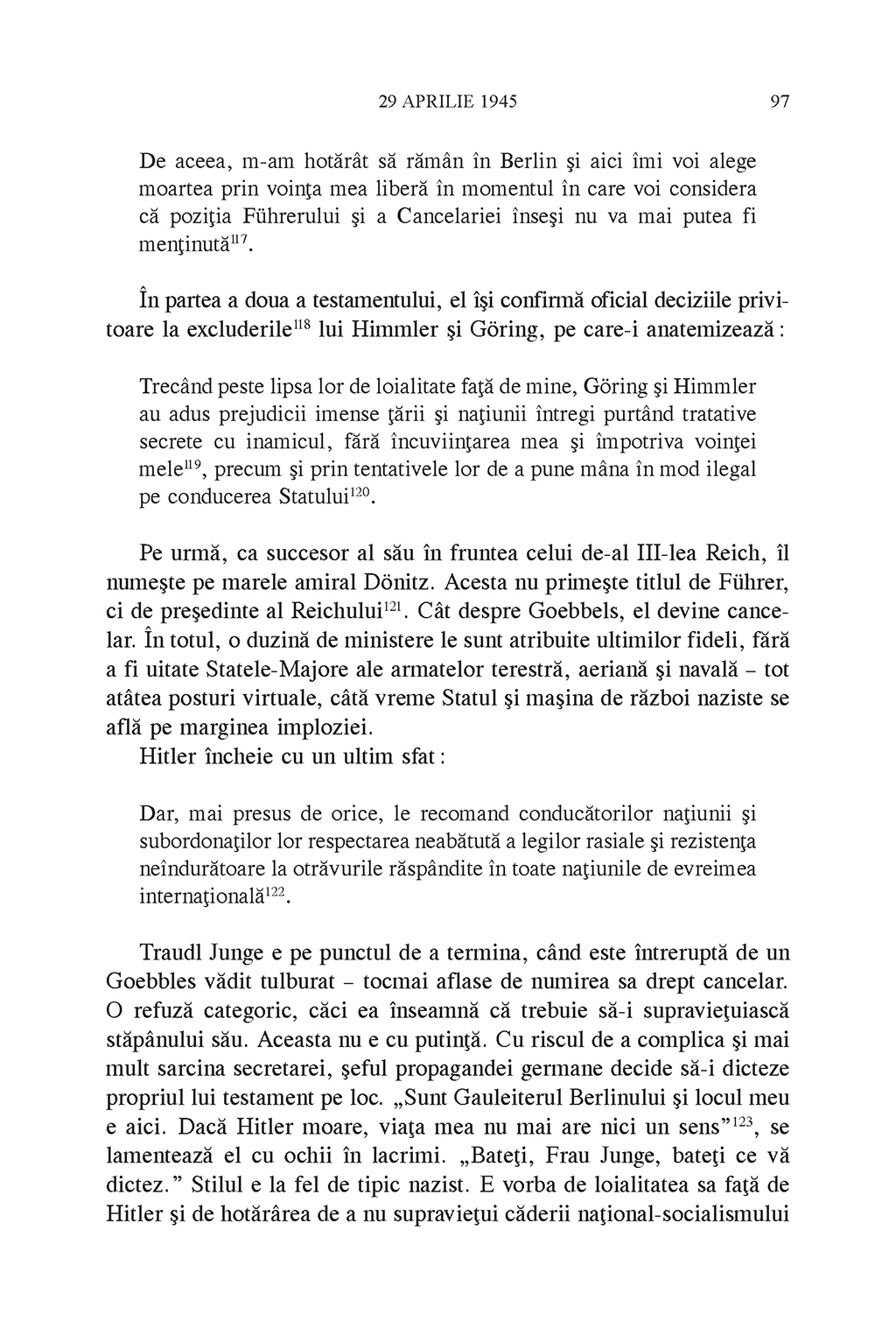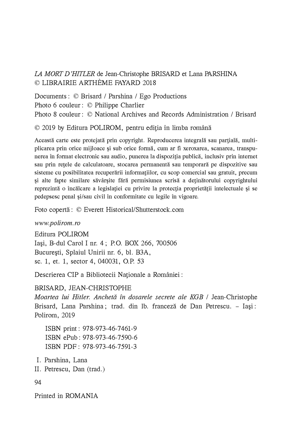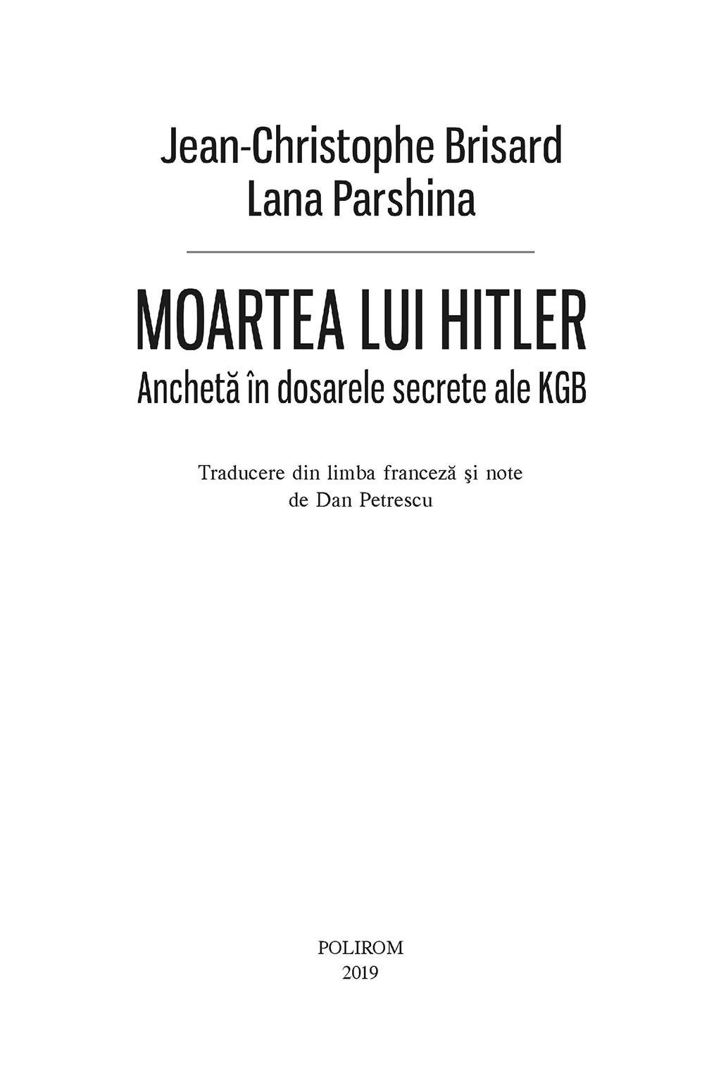La 8 mai 1945, Germania nazistă capitulează. Hitler se sinucisese cu o săptămînă înainte în buncărul său subteran. Englezii, americanii și sovieticii sărbătoresc împreună victoria. Aceasta este versiunea oficială. A existat însă mereu și o altă versiune: Hitler ar fi scăpat din Berlinul asediat și ar fi supraviețuit războiului. Care este adevărul? Răspunsul s-ar putea afla în arhivele serviciilor secrete ale fostei Uniuni Sovietice. După doi ani de negocieri cu autoritățile ruse, Jean-Christophe Brisard și Lana Parshina au reușit să obțină accesul la dosarele legate de căutarea rămășițelor pămîntești ale lui Hitler de către agenții sovietici. Examinînd conținutul arhivelor – inclusiv un fragment de craniu și un maxilar prezentate ca aparținînd liderului nazist – și apelînd la mijloacele științei moderne, cei doi autori aruncă o lumină nouă asupra ultimelor zile ale lui Hitler.
