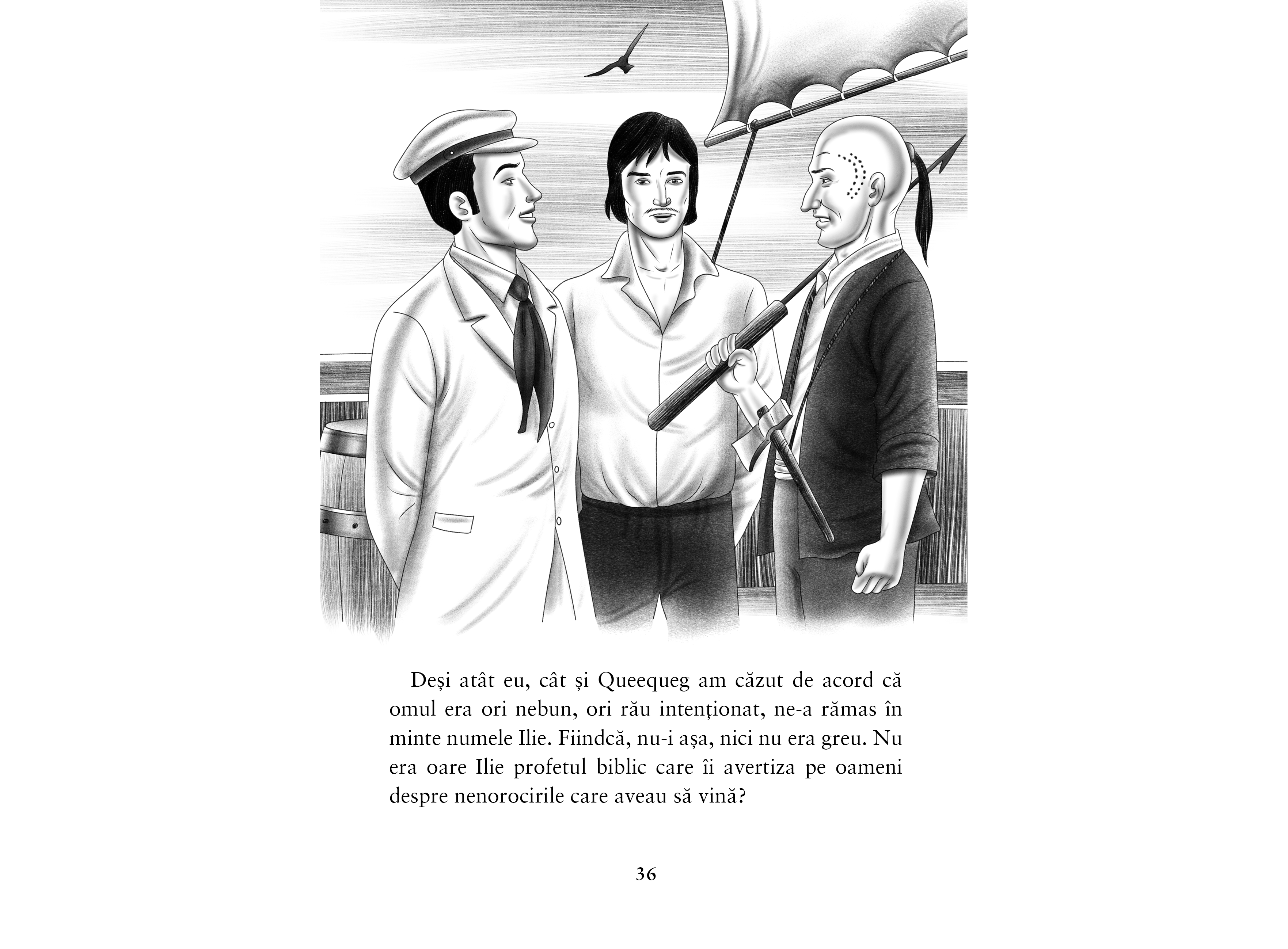Romanul descrie aventura lui Ishmael, care pornește într-o călătorie palpitantă pe mare, dar ajunge să fie prins, alături toți ceilalți membri ai echipajului de pe vasul Pequod, într-o urmărire obsesivă a misterioasei balene albe Moby Dick. Cartea este disponibilă acum într-un format atractiv, cu text scurtat și adaptat și ilustrații sugestive, fiind însoțită și de un jurnal de lectură, oferit gratuit.