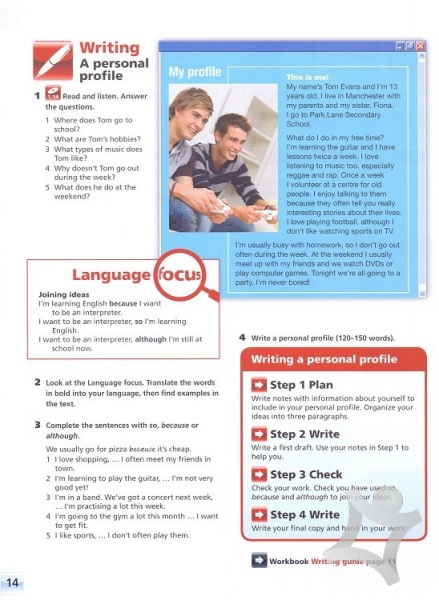 To make it easier to differentiate the difficulty, the tasks in the workbook are marked with stars, from the basic level, through more advanced tasks, to tasks for more gifted challenging levels. The lessons in the workbook are divided into a section for practicing writing and other skills, a Revision section at the end dedicated to revision, and an Extension section for more gifted students, which serves to expand their skills. Additional workbook CDs contain recordings of texts from the Reading and Writing section, dictations, grammar check exercises, workbook recordings, additional vocabulary and conversation exercises.
