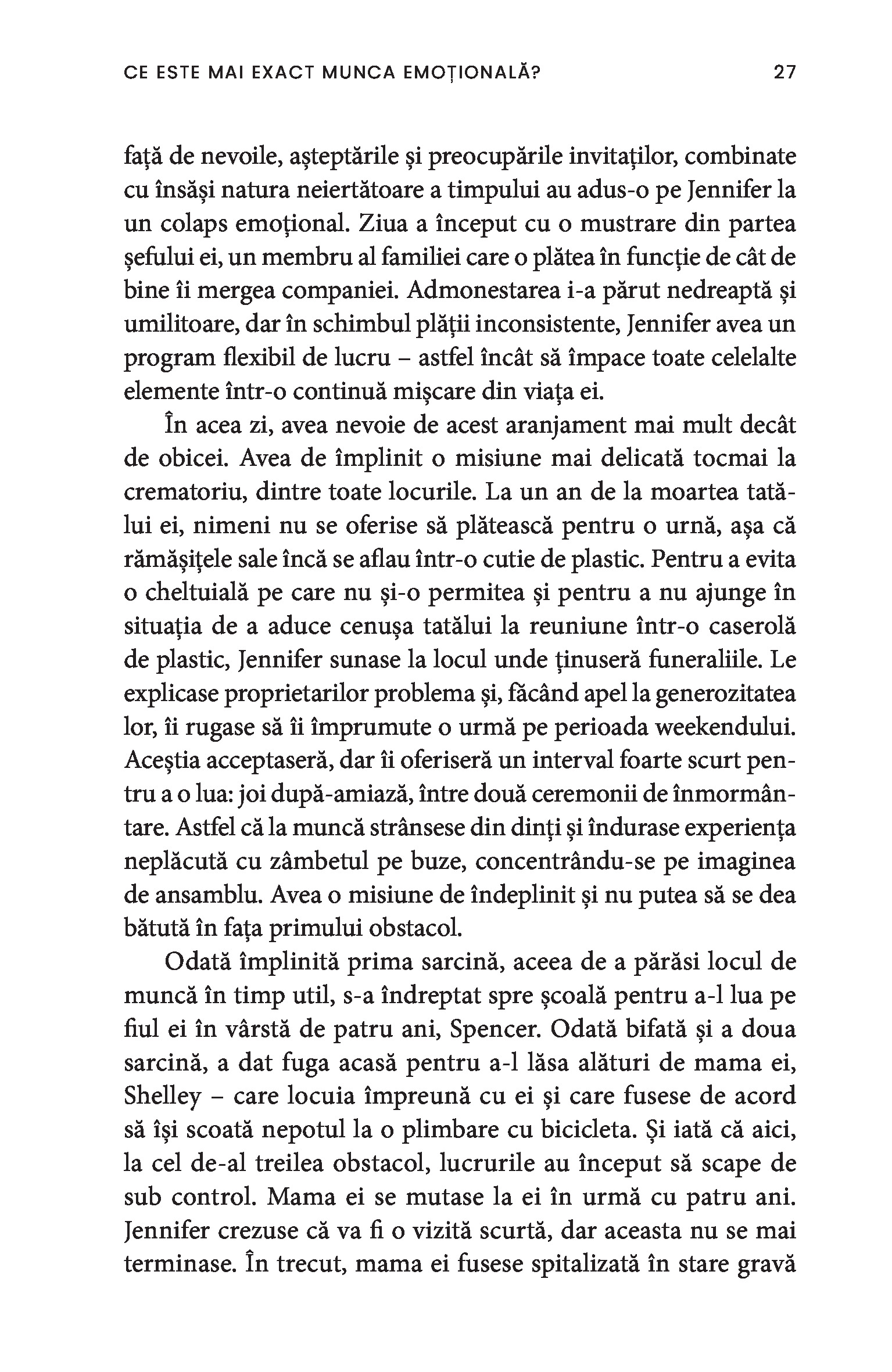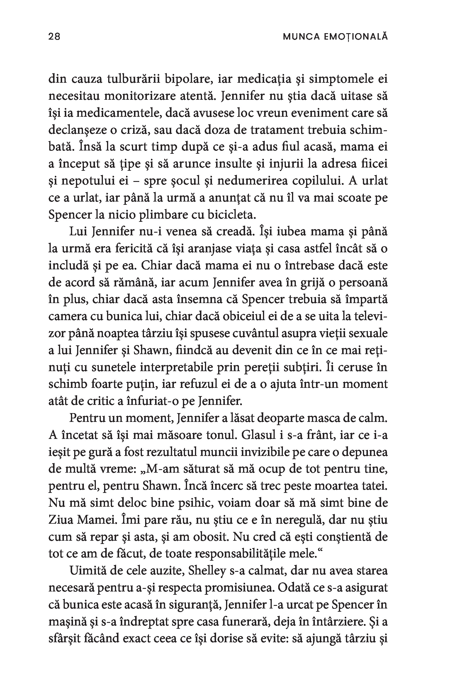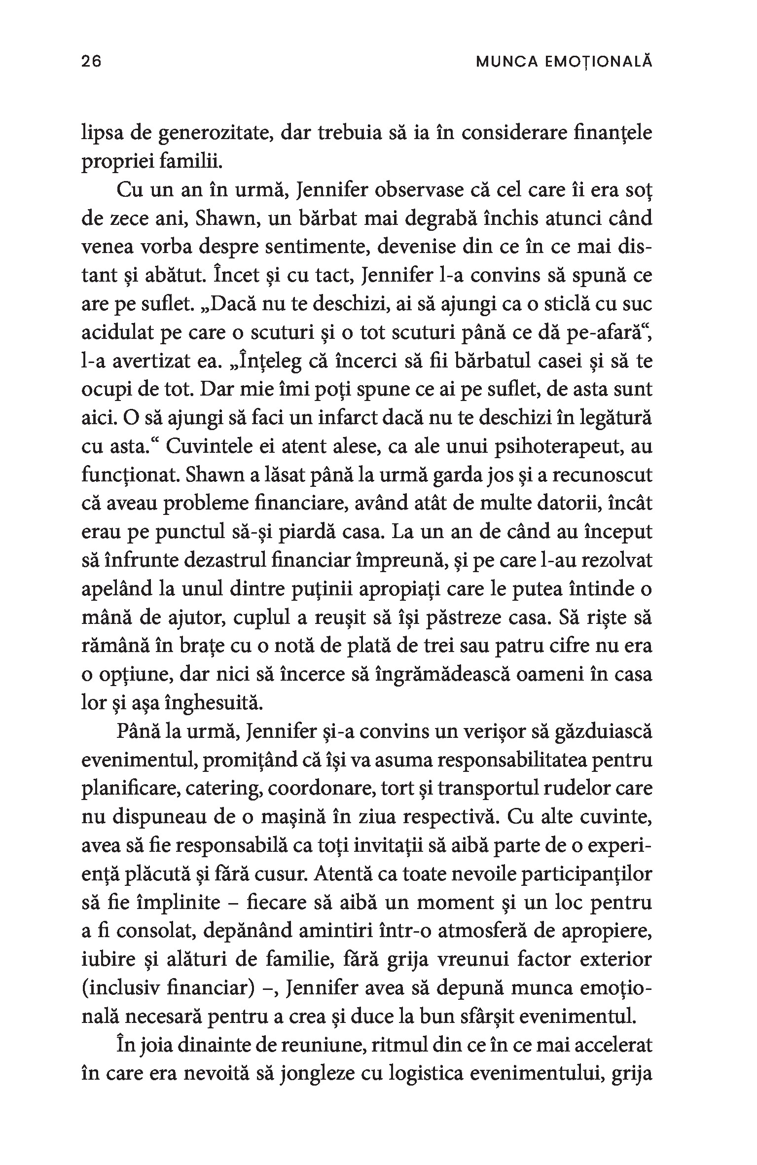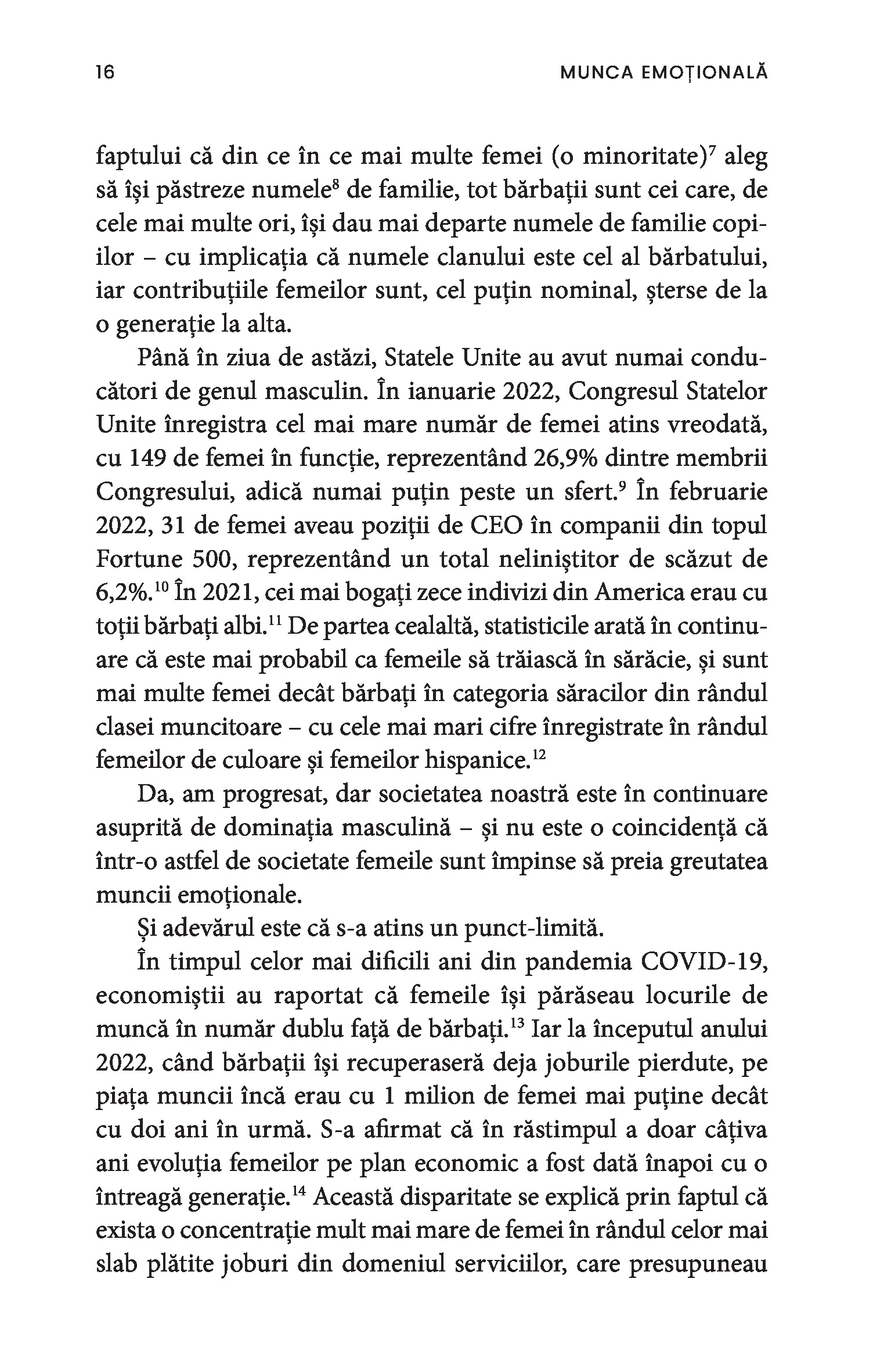 O bonă, o infirmieră, până și câștigătoarea unui concurs de frumusețe sunt toate nevoite să depună muncă emoțională. Chiar și într-un context profesional, obligația de a-i servi pe ceilalți impune adoptarea ipostazei epuizante de mamă, sau de soră împăciuitoare, sau de divă sexy și limitează drastic posibila exprimare a sinelui autentic. Paradoxul muncii emoționale este că percepția asupra capacităților femeilor este profund devalorizantă, ceea ce susține în continuare patriarhatul și duce la desconsiderarea muncii prestate de acestea.