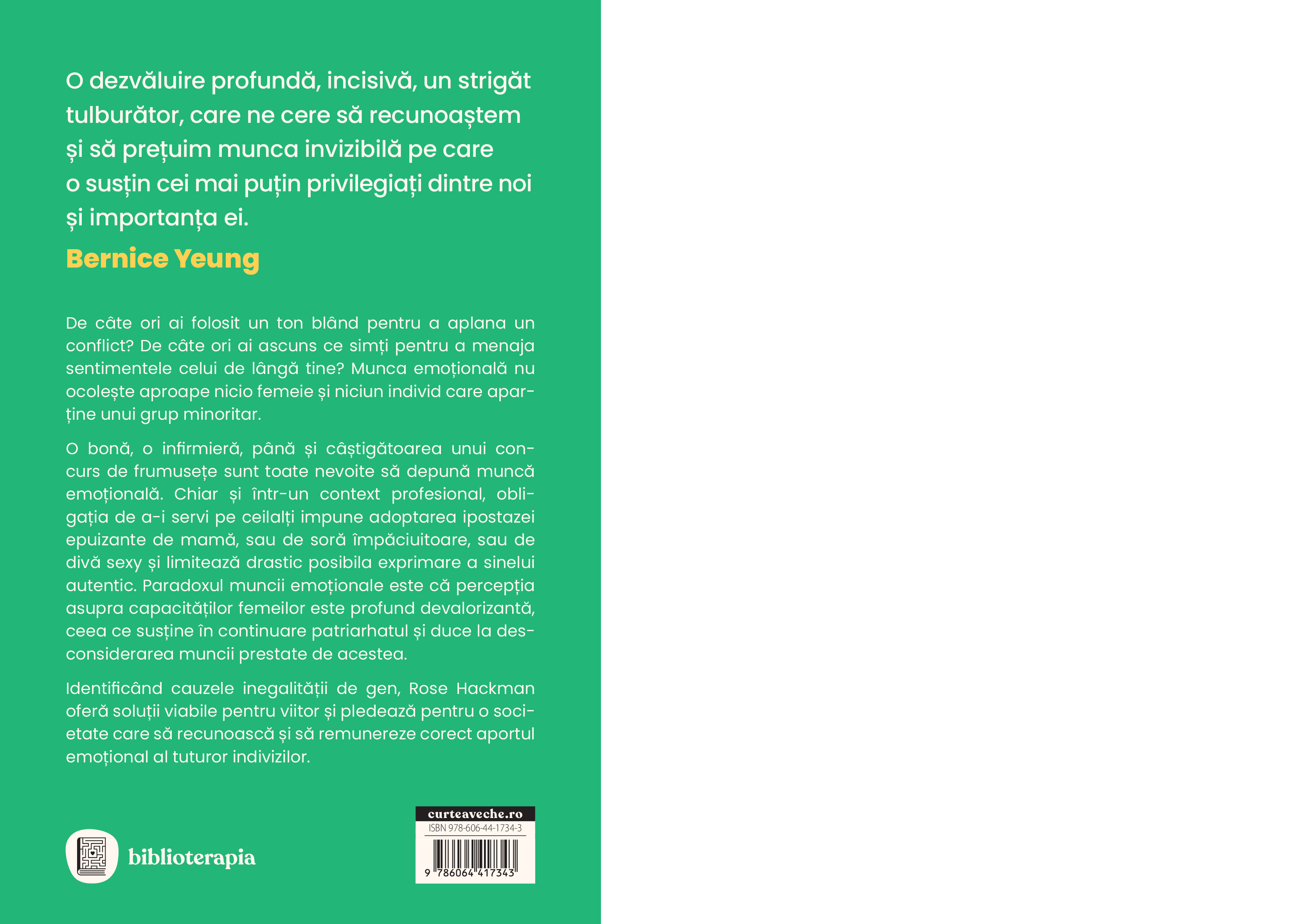 Identificând cauzele inegalității de gen, Rose Hackman oferă soluții viabile pentru viitor și pledează pentru o societate care să recunoască și să remunereze corect aportul emoțional al tuturor indivizilor.