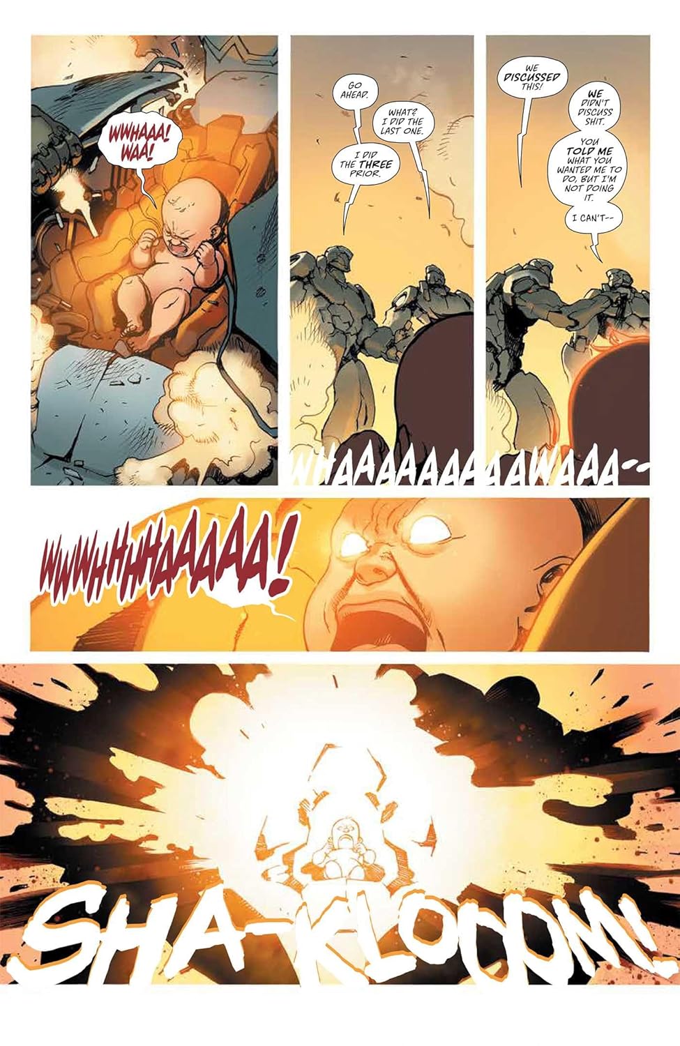 A child raised to believe he was God by a cult built on hatred, by zealots utterly confident in the purity and absolute moral authority of their religion… Enter a world ruled by The Magnificent Leader, where such a cult imposed their will on an entire world to create the ultimate theocracy. Join up and buy-in or be cast out to suffer in the toxic slums with the masses of humanity. The story of Napalm Lullaby begins 50 years after the cult’s subjugation of Earth, when two of the messiah’s bastard children―each with powers that are strange and difficult to control―set out to escape the slums of their birth. Determined to infiltrate the Magnificent Leader’s domed fortress of adulation, they’ll stop at nothing to kill the man responsible for the nightmare they were raised in. The bestselling creative duo behind fan-favorite series Death or Glory―Rick Remender and Bengal―reteam for an all-new dystopian epic in, Napalm Lullaby. Collects issues #1-6.