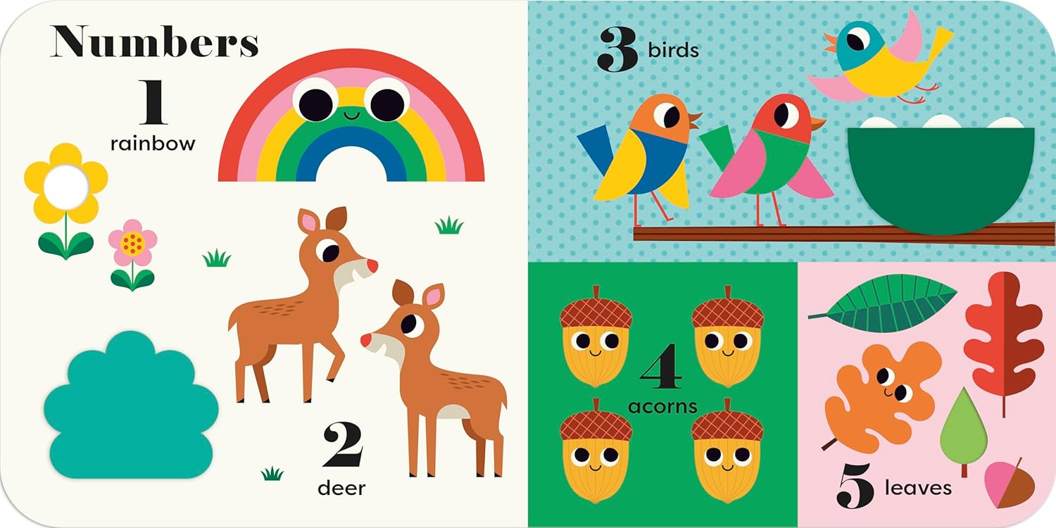 A BIG nature book for sharing with a little person, introducing first words, colours, numbers, shapes, opposites and more - with felt flaps and a mirror!