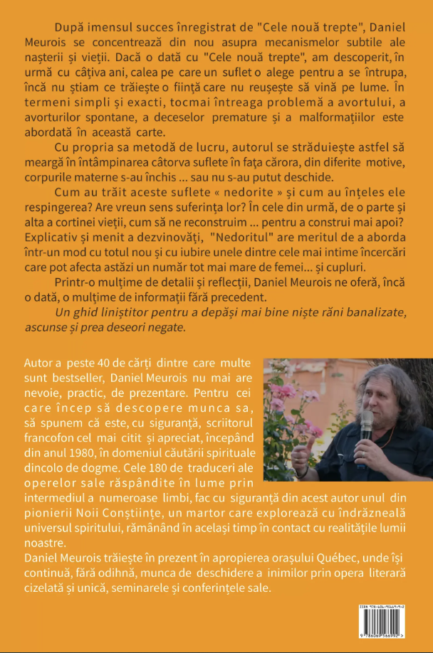 Daniel Meurois se concentrează din nou asupra mecanismelor subtile ale nașterii și vieții. Dacă o dată cu “Cele nouă trepte”, am descoperit, în urmă cu câțiva ani, calea pe care un suflet o alege pentru a se întrupa, înca nu știam ce trăiește o ființă care nu reușește să vină pe lume. În termeni simpli și exacți, tocmai întreaga problemă a avortului, a avorturilor spontane, a deceselor premature și a malformațiilor este abordată în această carte.