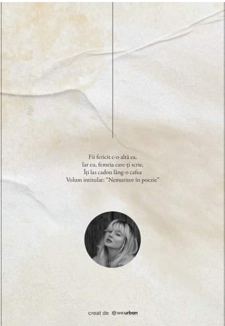 Poeziile mele sunt inspirate în proporție de 90% din poveștile trăite personal. Citindu-le vă veți conecta cu mine, adolescenta de atunci, cu dorul meu de casă și iubirile neconsumate de atunci.