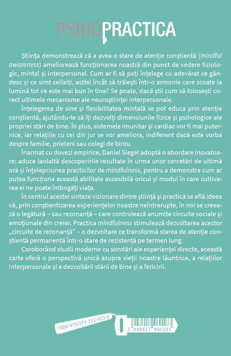 De la renumitul autor, lider si educator in domeniul sanatatii mintale, Daniel Siegel, prima carte care a integrat cercetarea in neurostiinta cu arta traditioanala a atentiei.