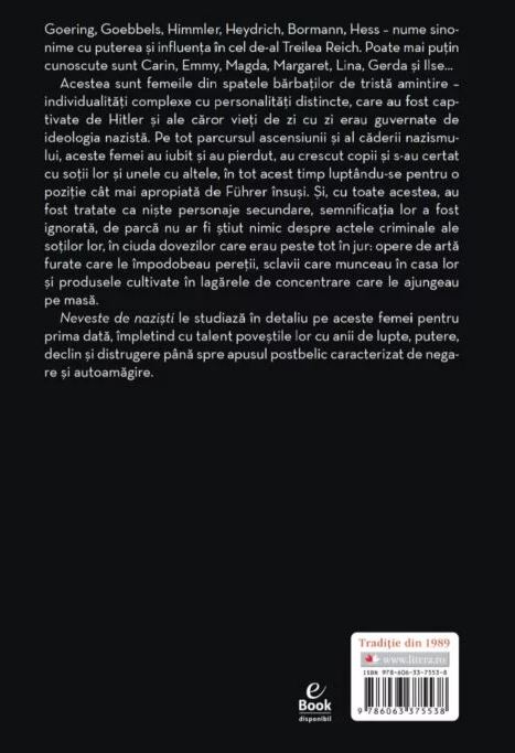 Goering, Goebbels, Himmler, Heydrich, Bormann, Hess – nume sinonime cu puterea și influența în cel de-al Treilea Reich. Poate mai puțin cunoscute sunt Carin, Emmy, Magda, Margaret, Lina, Gerda și Ilse...
