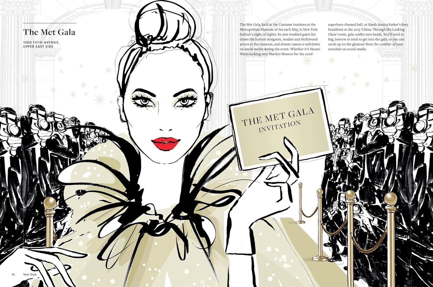 Skyscrapers, honking cabs and chic New Yorkers strutting the sidewalks – it's a city like no other. But where to visit, and what to do? Let Megan Hess take you on a fashion-lover's adventure through the city that never sleep – from breakfast at Tiffany's to people watching in Central Park.