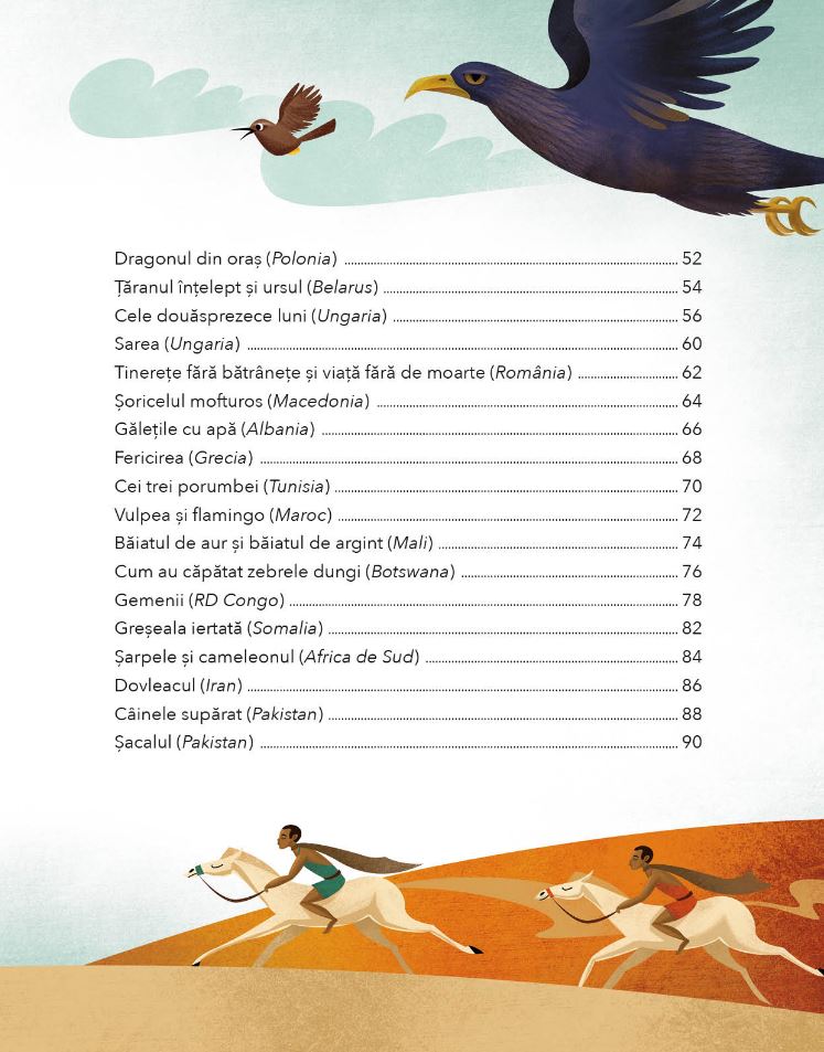Cartea conține povești specifice folclorului și tradițiilor din cele mai îndepărtate colțuri ale lumii, toate împărtășind același farmec. Sunt scurte, plăcute și captivante, cu personaje de neuitat și fără detalii înfricoșătoare care să-i tulbure sau să-i sperie pe micuți înainte de somn.
