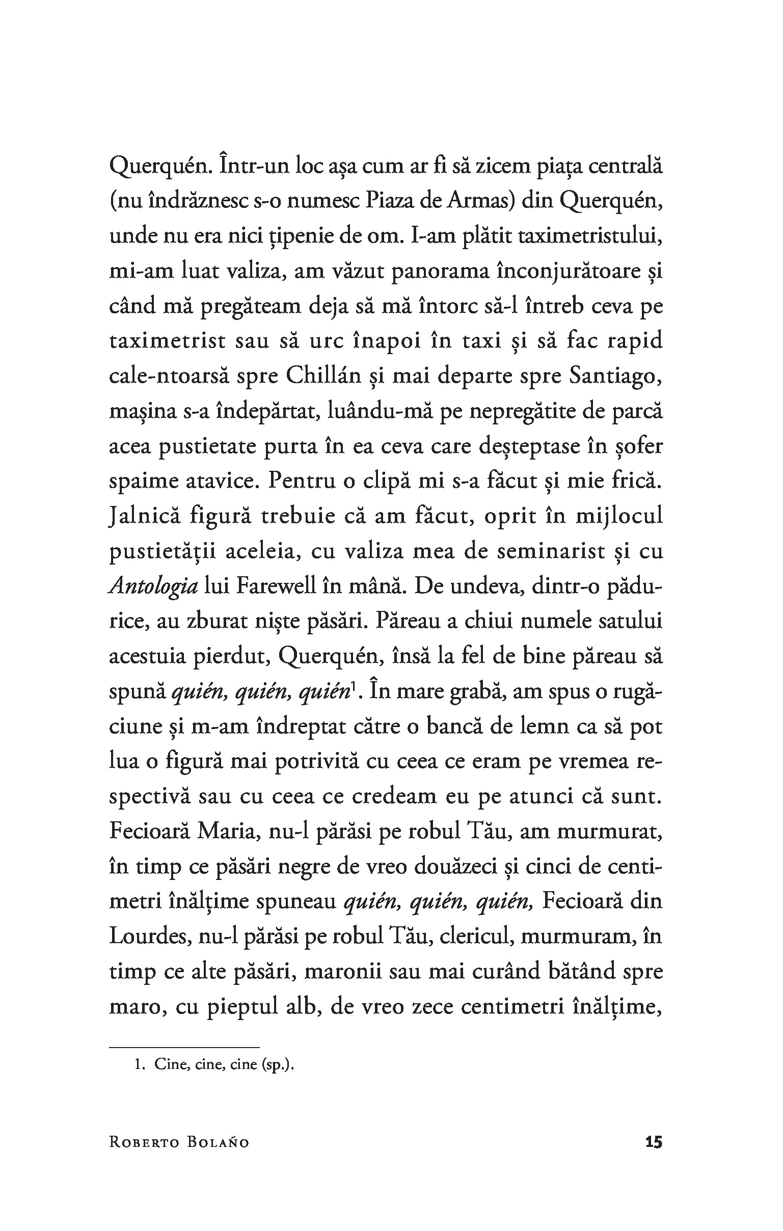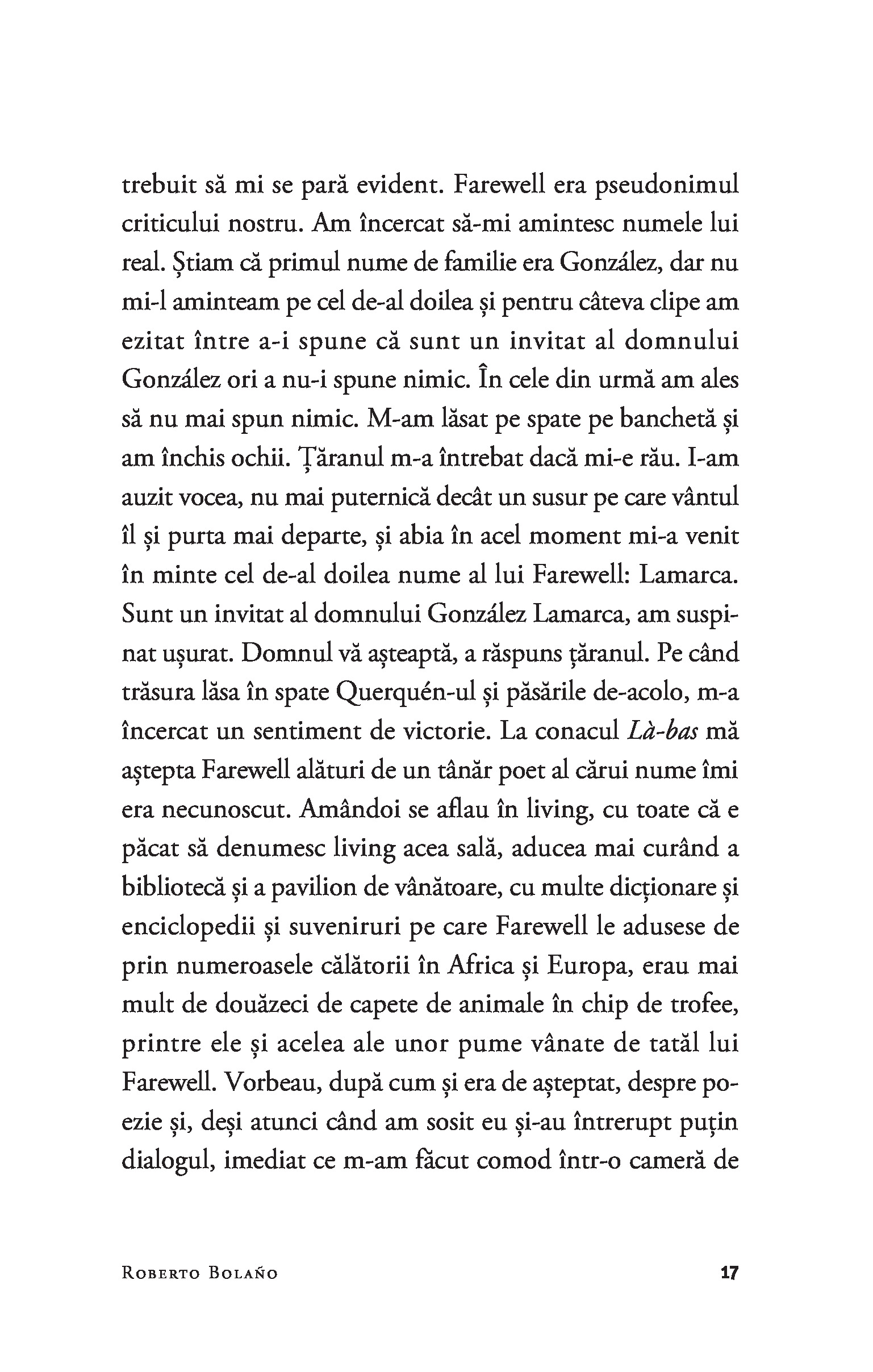 Roberto Bolaño s-a născut la Santiago de Chile în 1953, dar a trăit cea mai mare parte din viață în Mexic și în Spania, unde a murit la vârsta de 50 de ani. Este autorul a numeroase volume de ficțiune, nonficțiune și poezie, printre care se numără Detectivii sălbatici, O stea îndepărtată sau Nocturnă în Chile. În 2008 a primit, postum, The National Book Critics Circle Award pentru romanul monumental 2666.