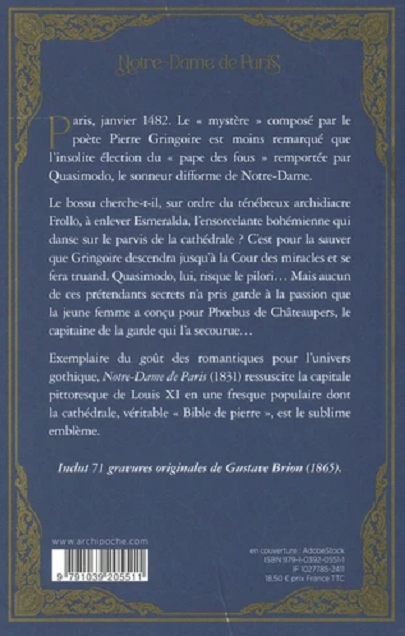 L'un des plus célèbres romans Victor Hugo, Notre-Dame de Paris , dans une élégante édition semi-poche entièrement illustrée qui Inclut 71 gravures originales de Gustave Brion (1865).
