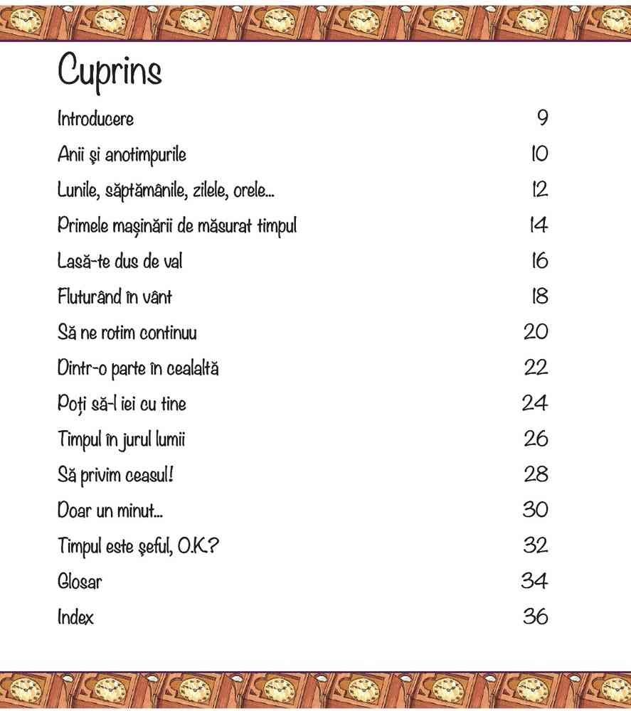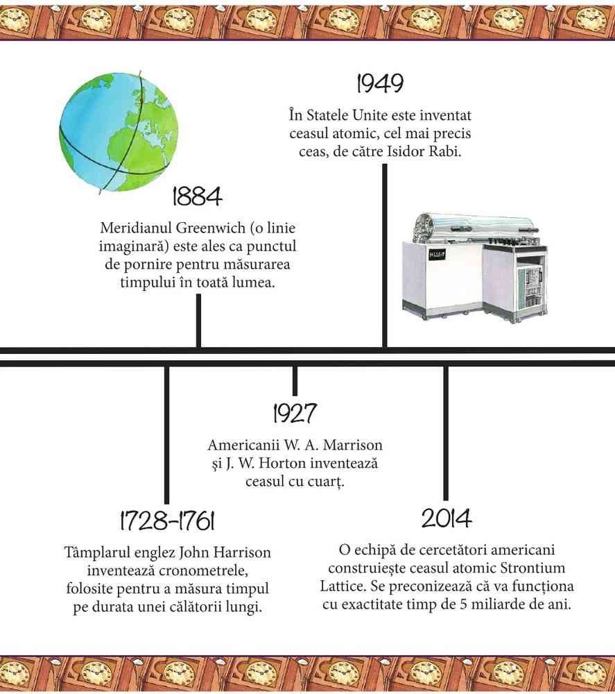 Timpul a fost dintotdeauna important pentru omenire. Chiar şi primii oameni de pe Pământ voiau să ştie cât de mult dura o zi şi cât mai aveau de aşteptat până când turmele de bivoli aveau să se întoarcă. Această carte spune povestea obsesiei noastre pentru timp şi metodele din ce în ce mai exacte prin care îl măsurăm.