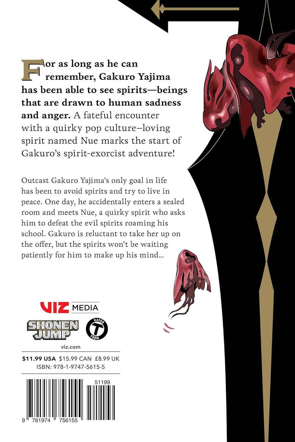 For as long as he can remember, Gakuro Yajima’s been able to see spirits—beings that are drawn to human sadness and anger. A fateful encounter with a quirky pop culture–loving spirit named Nue marks the start of Gakuro’s spirit-exorcist adventure!