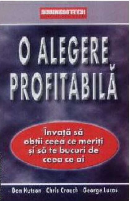 Se spune ca majoritatea oamenilor tintesc in viata mediocritate si o nimeresc cu o precizie uimitoare. Ei bine, cartea O alegere profitabila poate rupe acest tipar! Aceasta combinatie minunata de intelepciune, cunostinte , introspectie si umor iti ofera un sistem gradual de a realiza un echilibru mai bun, rezultate mai multe si o satisfactie mai mare decat ai crezut vreodata ca sunt posibile in viata si in munca. Testul de evaluare de la sfarsitul cartii masoara gradul de satisfactie. Folosind cartea drept ghid, elimina haosul si confuzia pentru a face si tu parte din micul grup de oameni impliniti, oameni care obtin ceea ce merita si se bucura de ceea ce au, oameni care au facut o alegere profitabila.
