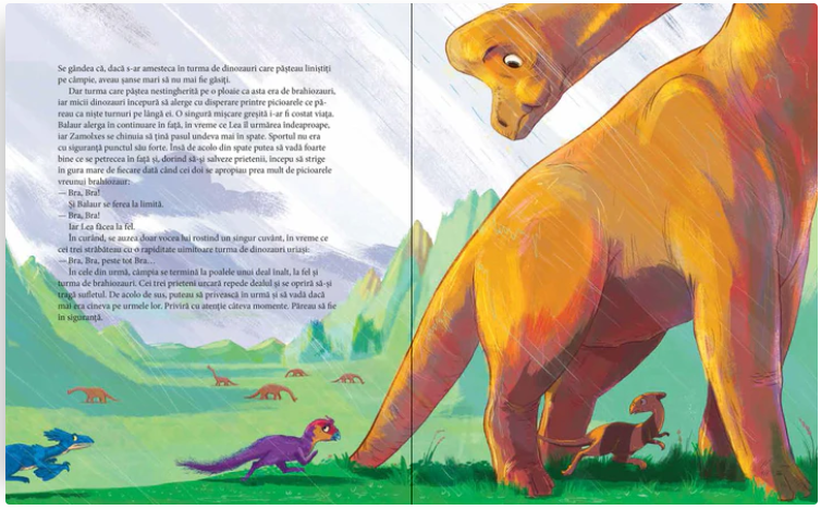 O poveste palpitantă, însoțită de 10 lucruri interesante despre dinozauri, toate adevărate, spre deliciul micilor cititori.
