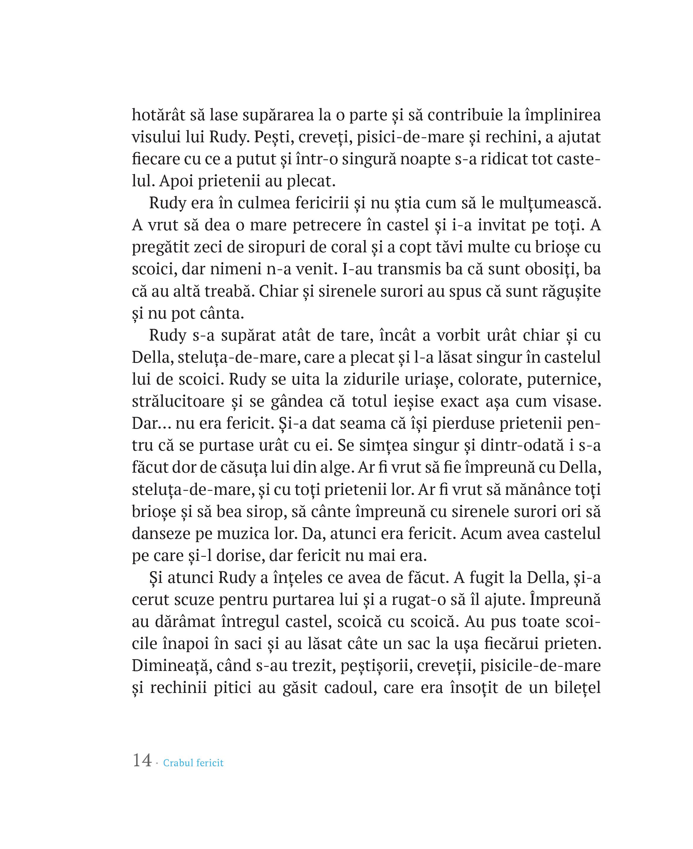 Ilustraţiile care însoţesc textul, create de Lavinia Fălcan, îi vor ajuta să plăsmuiască personaje magice şi universuri fermecate şi să pătrundă astfel în universul feeric al poveştilor Cristinei.