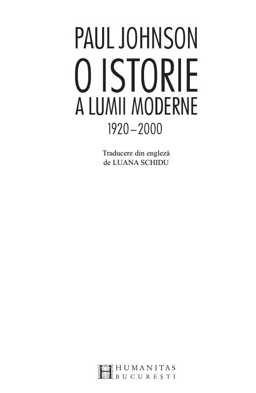 „Istoric al ideilor, mentalităţilor şi pasiunilor colective, gînditor conservator mereu iconoclast şi imprevizibil, Paul Johnson oferă în acest volum o perspectivă lucidă asupra unui secol în care civilizaţia s-a prăbuşit, iar barbaria a renăscut în veşminte ideologice. Este vorba despre acel secol pe care regretatul Matei Călinescu, scriind despre această carte, l-a numit «al monştrilor». În această teratologie, Lenin, Stalin, Hitler, Mao sînt falşii profeţi ai unei purificări absurde, aberante, catastrofale. A fost un secol al ideologiilor liberticide şi al terorii universalizate. A fost însă, nu mai puţin, un secol al rezistenţei antitotalitare, al supravieţuirii demnităţii în pofida atîtor capcane, obstacole şi pericole. Cartea lui Johnson se citeşte pe nerăsuflate, asemenea unui roman în care eroii sîntem chiar noi, prinşi în marele angrenaj al unei modernităţi ambivalente şi paradoxale.“ (Vladimir TISMĂNEANU)