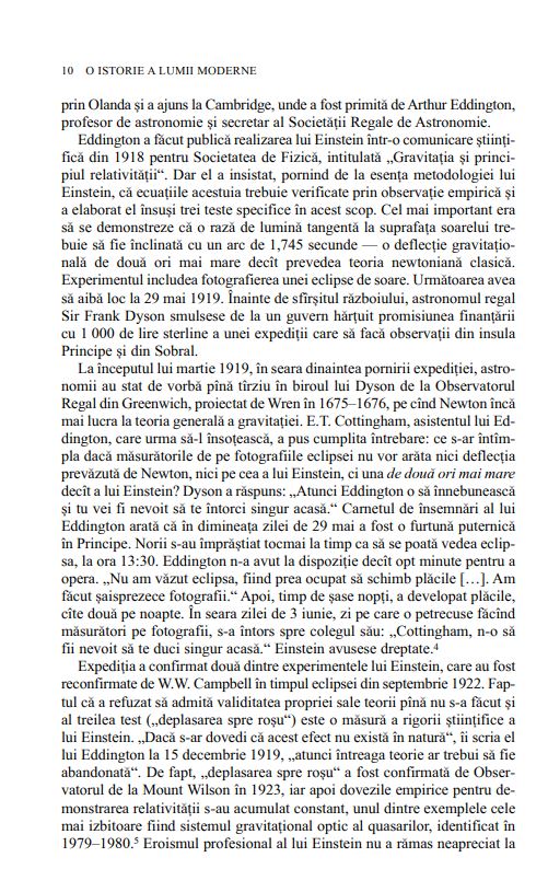 „O carte cu adevărat valoroasă, în care viziunea istorică se îmbină cu perspectiva critică. O istorie a lumii modernereprezintă mai mult decît o cronică de mari dimensiuni a evenimentelor şi personajelor istorice. Lectura sa este un prilej de veritabilă desfătare intelectuală.“ (Robert A. NISBET, The New York Times Book Review)
