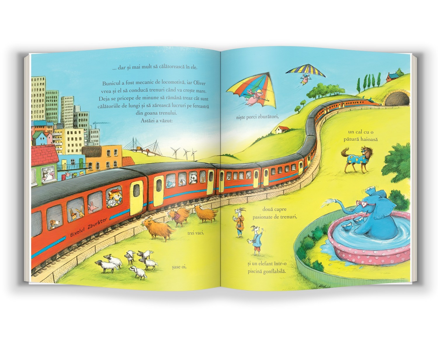 Îți plac trenurile, nu-i așa? Dexter și bunicul lui sunt înnebuniți după ele! Alătură-li-te în călătorie și descoperă care este preferatul tău: trenul cu aburi sau cel cu vagoane de dormit? Zebra Express-ul sau Trenul Soarelui? Din gara animalelor vei porni într-o aventură extraordinară!