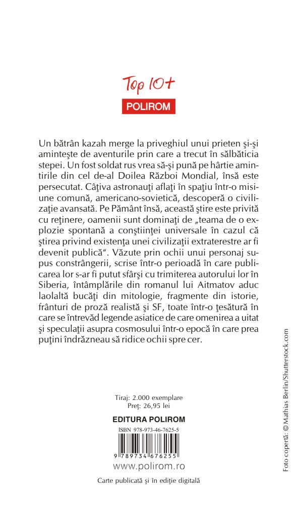 Un bătrân kazah merge la priveghiul unui prieten şi-şi aminteşte de aventurile prin care a trecut în sălbăticia stepei. Un fost soldat rus vrea să-şi pună pe hîrtie amintirile din cel de-al Doilea Război Mondial, însă este persecutat. Cîţiva astronauţi aflaţi în spaţiu într-o misiune comună, americano-sovietică, descoperă o civilizaţie avansată. Pe Pămînt însă, această ştire este privită cu reţinere, oamenii sunt dominaţi de „teama de o explozie spontană a conştiinţei universale în cazul că ştirea privind existenţa unei civilizaţii extraterestre ar fi devenit publică”. Văzute prin ochii unui personaj supus constrîngerii, scrise într-o perioadă în care publicarea lor s-ar fi putut sfîrşi cu trimiterea autorului lor în Siberia, întîmplările din romanul lui Aitmatov aduc laolaltă bucăţi din mitologie, fragmente din istorie, frînturi de proză realistă şi SF, toate într-o ţesătură în care se întrevăd legende asiatice de care omenirea a uitat şi speculaţii asupra cosmosului într-o epocă în care prea puţini îndrăzneau să ridice ochii spre cer.