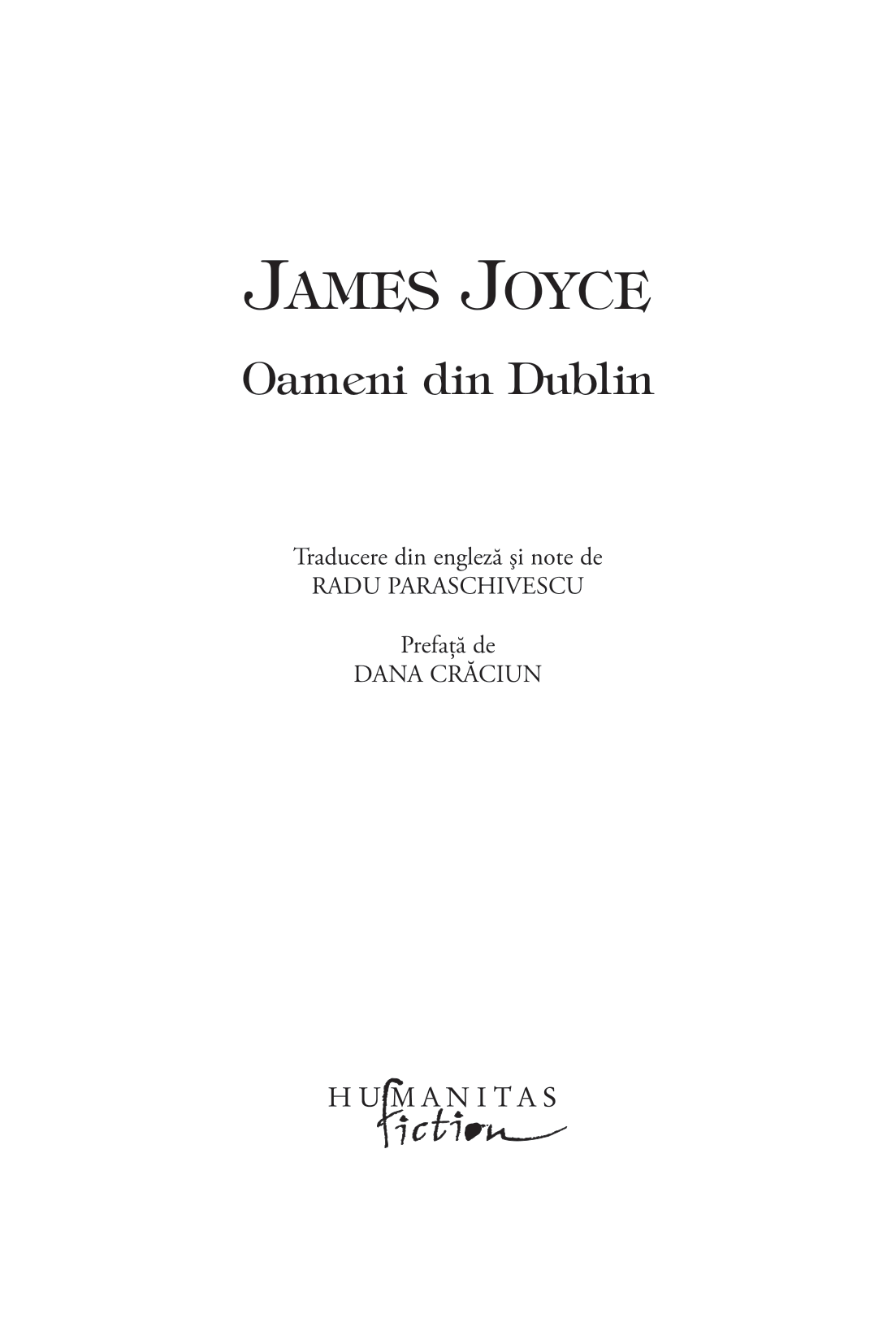 Seria de autor pe care Editura Humanitas Fiction o dedică scriitorului irlandez James Joyce (1882–1941) se deschide cu celebrul volum de povestiri din 1914 Oameni din Dublin.