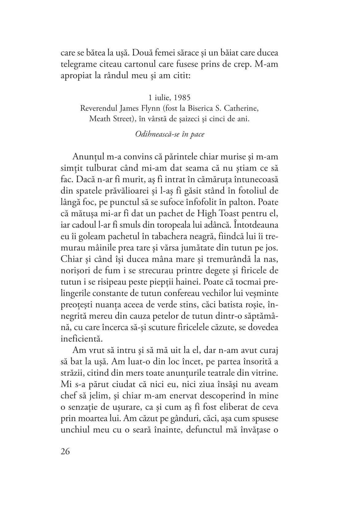 Din Drumcondra la Canal Bridge şi de pe Henry Street în Temple Bar, ploaia şi soarele spală obrajii ridaţi ai Dublinului. Oamenii de aici trăiesc în ritmul propriilor obsesii, spaime şi năzuinţe. Unul vrea să-şi regăsească iubirea exilată într-un pliu al memoriei, altul se visează pilot de raliu. Unul simte iminenţa sfârşitului, altul cere următorul pahar. Sunt oameni obişnuiţi, prinşi dezordonat în insectarul vieţii. Portretul Dublinului se compune din bucuriile, deznădejdile, renunţările şi elanurile celor care-l populează: reverendul Flynn rămas amintire în mintea unui copil, necunoscutul care vorbeşte ciudat, fata care nu ştie să scape de acasă, tinerii burlaci Corley şi Lenehan, locatarii din Pensiunea Mooney, ratatul Farrington, Gabriel Conroy şi, in final, ninsoarea „peste toţi cei vii şi cei morţi“.
