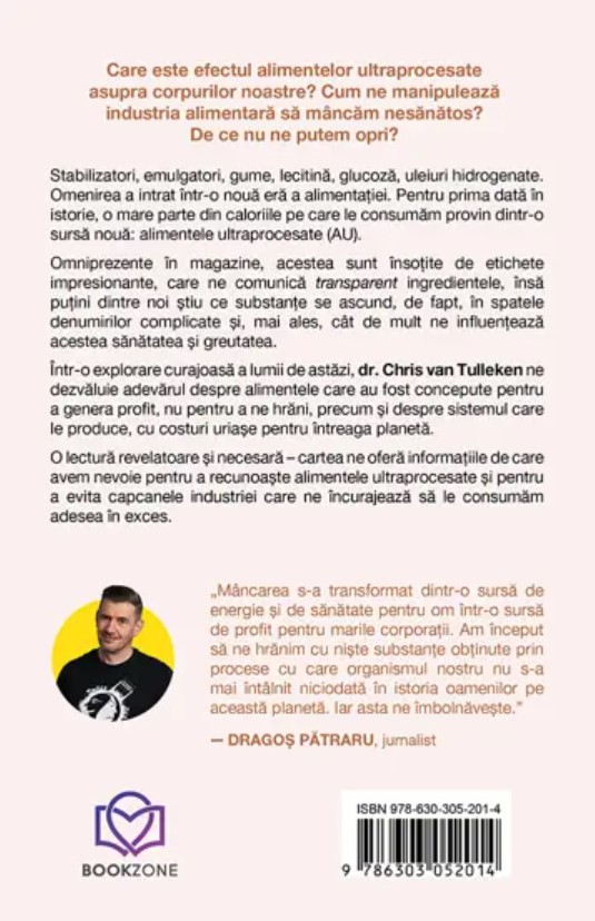 „Dacă e ceva ce am învățat din cartea lui Van Tulleken este că mult mai problematic decât consumul de sare, zahăr și grăsimi este consumul de substanțe care imită mâncarea. Sunt substanțe create în laborator, pe care corpul nostru nu le recunoaște ca hrană.” - Dragoș Pătraru, jurnalist