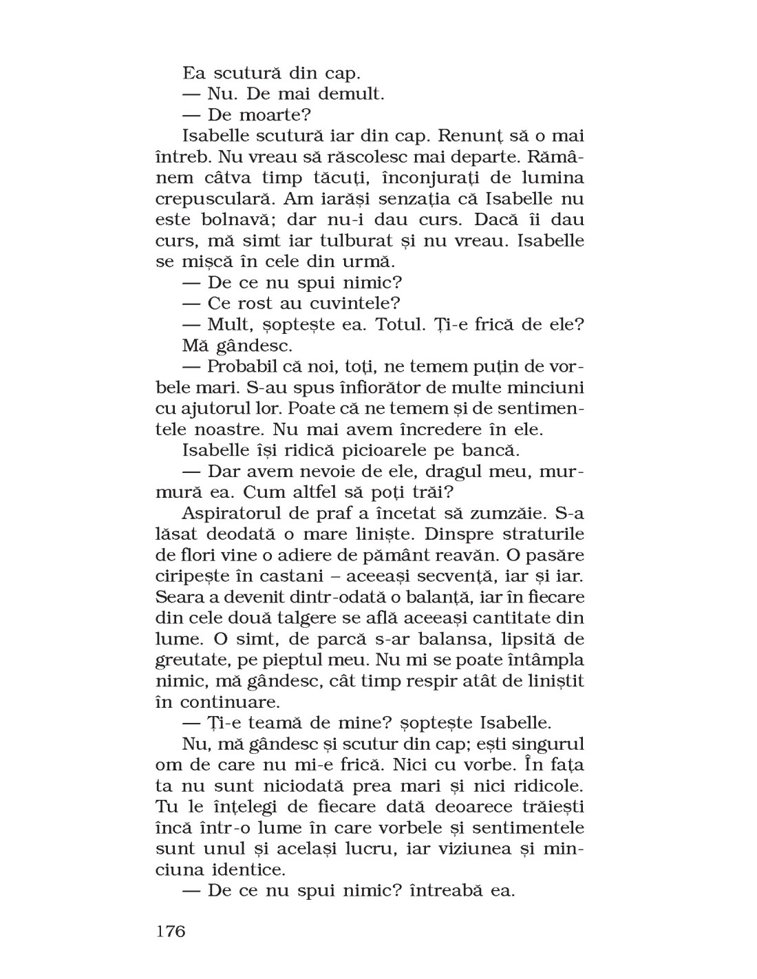 Ludwig, a cărui tinereţe a fost furată de război, e frământat de întrebări legate de viaţa în mijlocul acestui haos. Aşa ajunge s-o întâlnească pe Isabelle, tânăra tulburată alături de care speră să găsească iubirea, salvarea atât de căutată, dar şi sensul atrocităţilor unui război pe care lumea, încercând să subziste, deja începe să le uite.