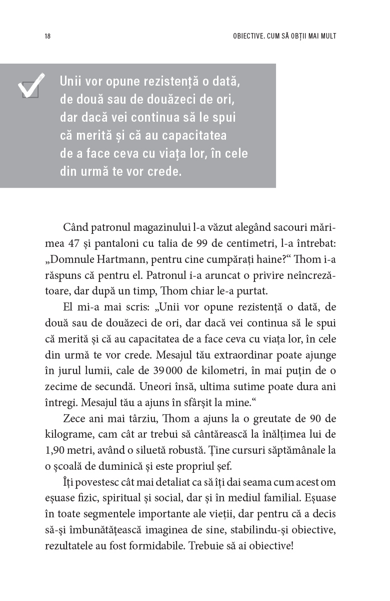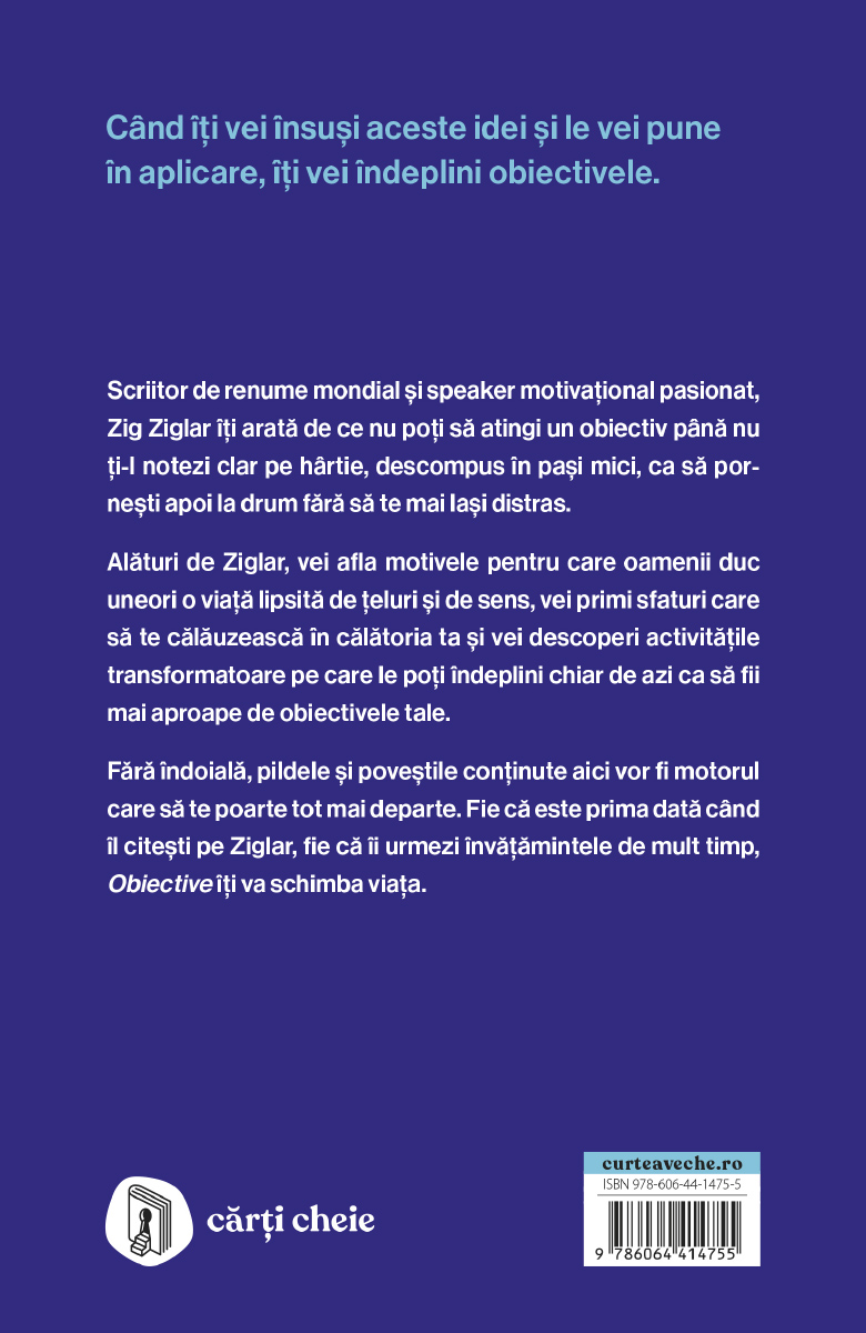Fără îndoială, pildele și poveștile conținute aici vor fi motorul care să te poarte tot mai departe. Fie că este prima dată când îl citești pe Ziglar, fie că îi urmezi învățămintele de mult timp, Obiective îți va schimba viața.
