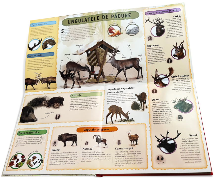 Cine sunt aceste animale și cum trăiesc ele? Poți afla pe paginile acestei cărți bogat ilustrate, "Observa animalele din padure impreuna cu Scufita Rosie ", care leagă în mod unic faimoasa poveste de basm cu o enciclopedie plină de cele mai interesante informații despre animalele din pădure și mediul lor înconjurător.