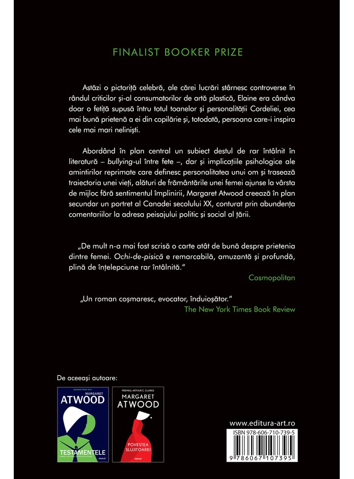 „De mult n-a mai fost scrisă o carte atât de bună despre prietenia dintre femei. Ochi-de-pisică e remarcabilă, amuzantă și profundă, plină de înțelepciune rar întâlnită.” Cosmopolitan