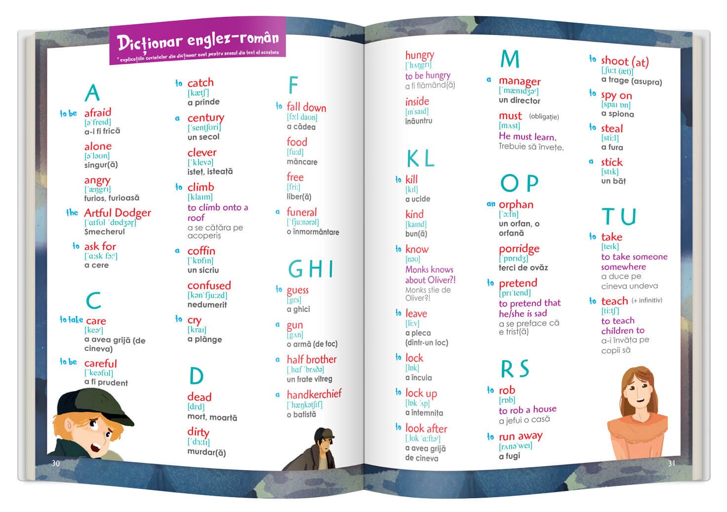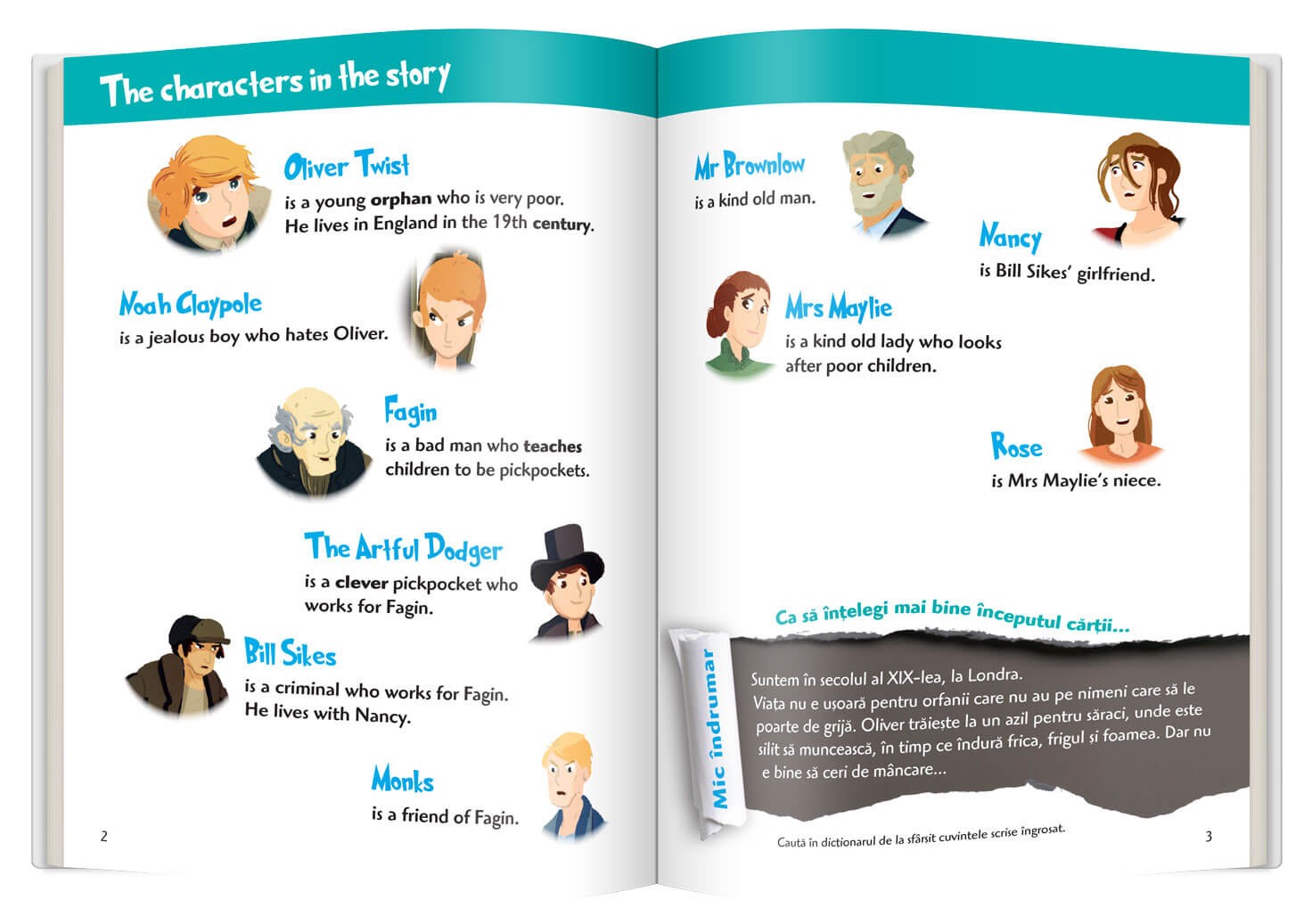 • dicționar englez-român la sfârșitul fiecărui volum, ca să înțelegi mai bine textul.