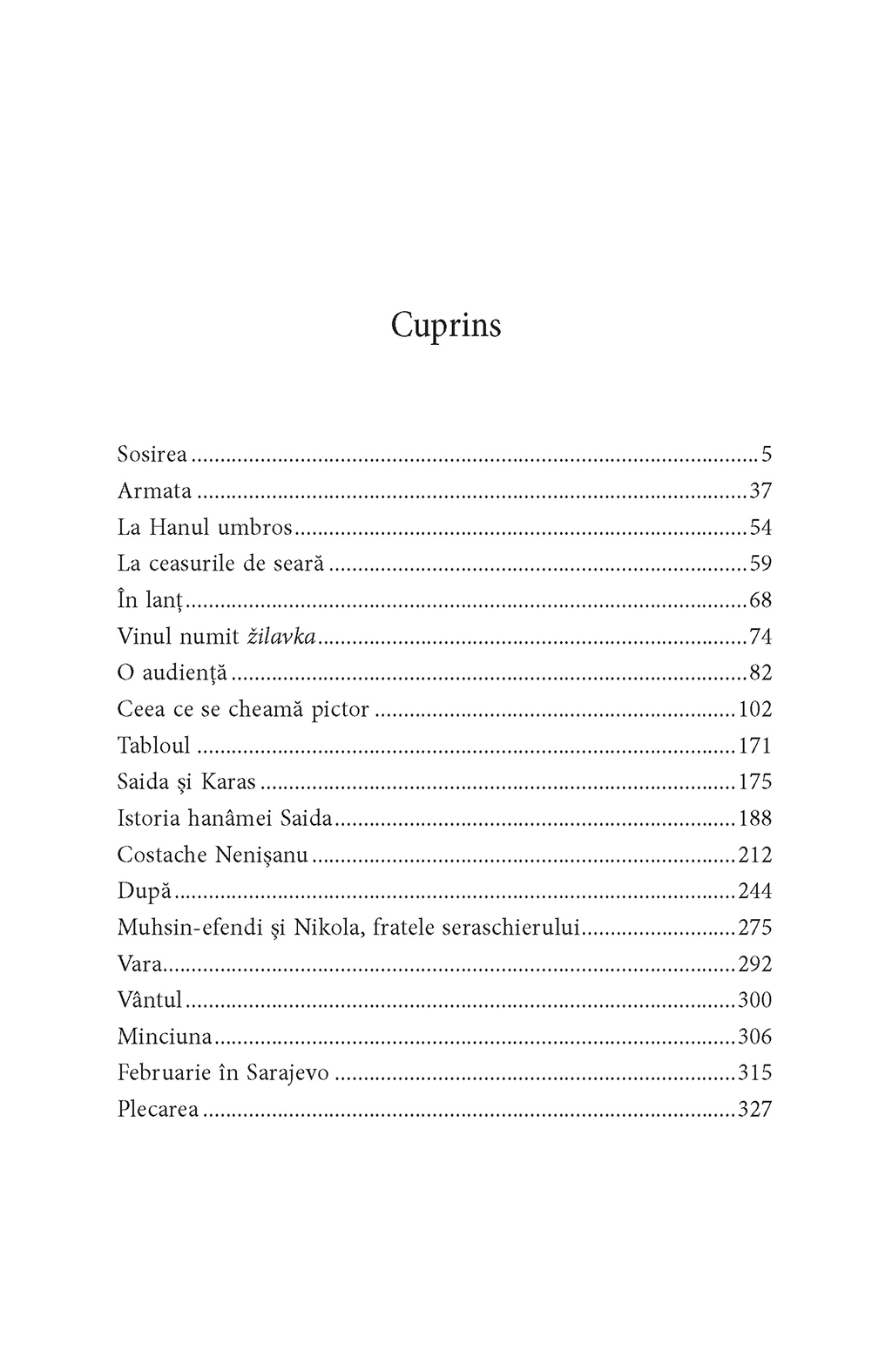 Romanul este o relatare a vieţii generalului otoman de origine sârbă Omer-paşa Latas (1806-1871), trimis în Bosnia în 1850 de sultanul Abdul-Medjid pentru a impune autoritatea turcă. Deşi supusă Istanbulului, Bosnia este în realitate condusă de cneji, dintre care voievodul Bogdan Zimonjić domneşte asupra regiunii Sarajevo. Şi pe aceşti cneji va încerca Omer-paşa să-i supună. În jurul lor, ca pe o tablă de şah, se încrucişează mai multe figurine: regina – soţia seraschierului; nebunul – Costache Nenişanu, care îşi pierde minţile din dragoste; tura – servitorul paşei, care îl protejează pe acesta şi îi satisface viciile; pionii – soldaţii, foşti austrieci sau croaţi trecuţi la legea islamică. O extraordinară frescă istorică ce dovedeşte încă o dată măiestria cu care Ivo Andrić, laureat al Premiului Nobel pentru Literatură, stăpâneşte arta miniaturii.