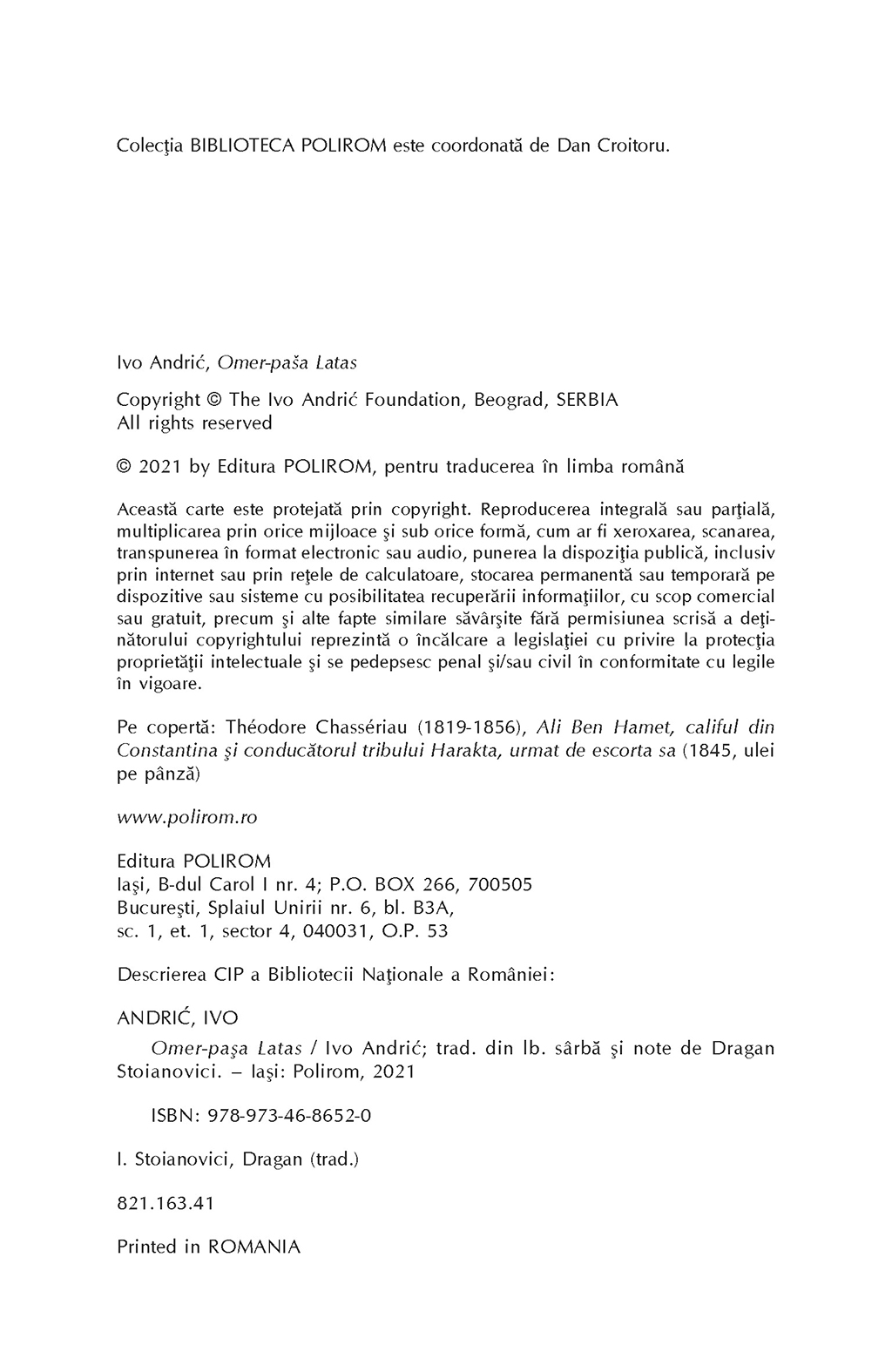 „...Iar apoi – pe un cal alb cu hăţurile aurite şi ciucuri roşii, într-o uniformă verde-închis, brodată cu aur, zvelt şi parcă turnat – seraschierul Omer-paşa. Semăna puţin cu o nălucă, una neaşteptat de blândă şi de binevoitoare. De parcă nu călărea, ci plutea pe un nor. Uimită şi plină de admiraţie, mulţimea vedea, necrezându-şi ochilor, cum licărul soarelui la asfinţit îi cade pe piept şi îi luminează faţa cu barba uşor încărunţită şi cu o expresie de demnitate gravă şi de blândeţe enigmatică.”