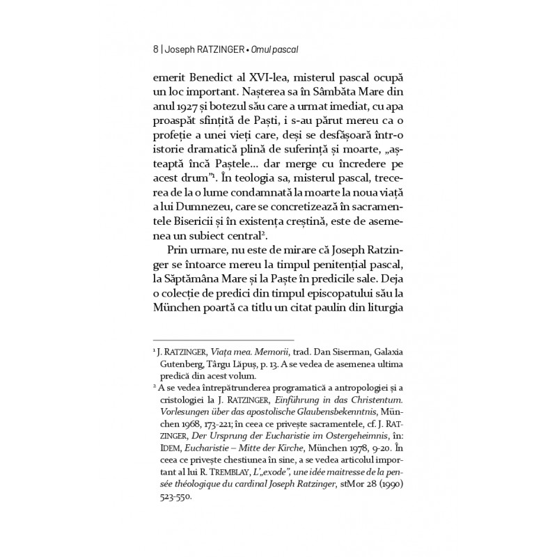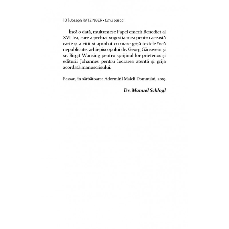 În biografia lui Joseph Ratzinger, papa Benedict al XVI-lea, misterul pascal ocupă un loc important. Naşterea sa în Sâmbăta Mare din anul 1927 şi botezul care a urmat imediat, cu apa proaspăt sfinţită de Paşte, i s-au părut mereu ca o profeţie a unei vieţi care, deşi se desfăşoară într-o istorie dramatică plină de suferinţă şi moarte, "așteaptă încă Paştele... dar merge cu încredere pe acest drum". În teologia sa, misterul pascal, trecerea de la o lume condamnată la moarte la noua viaţă a lui Dumnezeu, care se concretizează în sacramentele Bisericii şi în existenţa creştină, este de asemenea un subiect central.