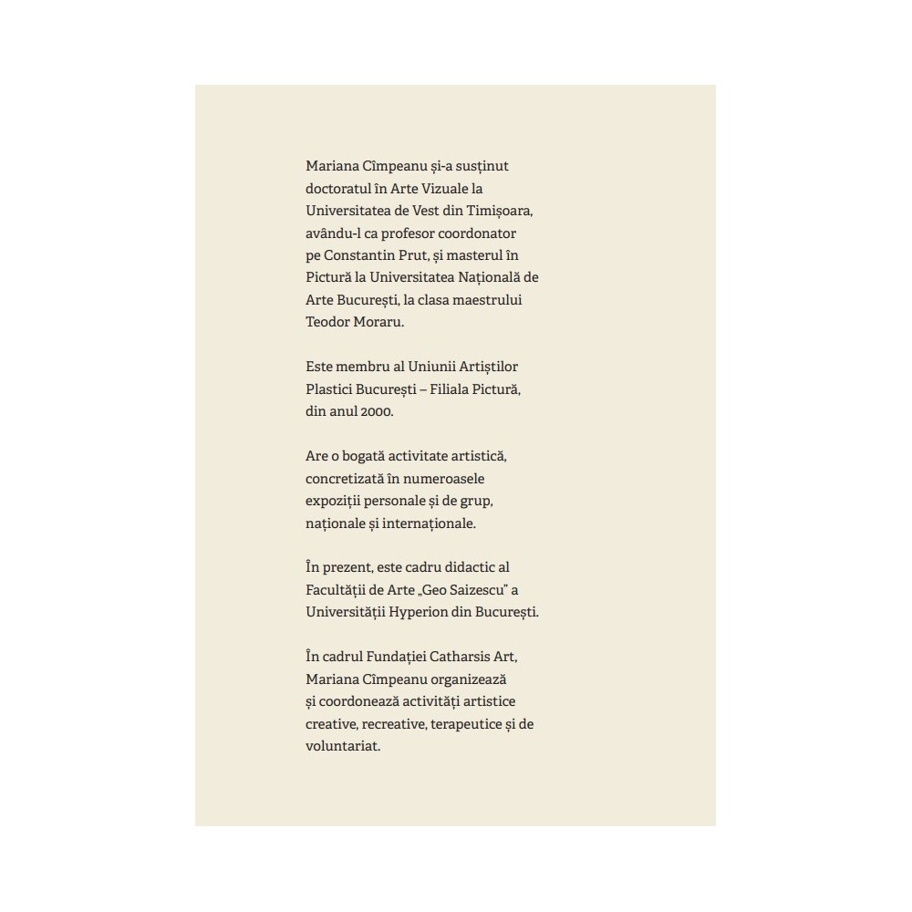 „Scrisă spre a aduce înțelesuri deopotrivă de natură estetică, artistică și de istoria artei, cartea Marianei Cîmpeanu este și un salutar manual, adresat studenților din spațiul interdisciplinar, ce cuprinde alături de ariile deja menționate și pe cele ale teatrului, ale filmului ori ale spectacolului.