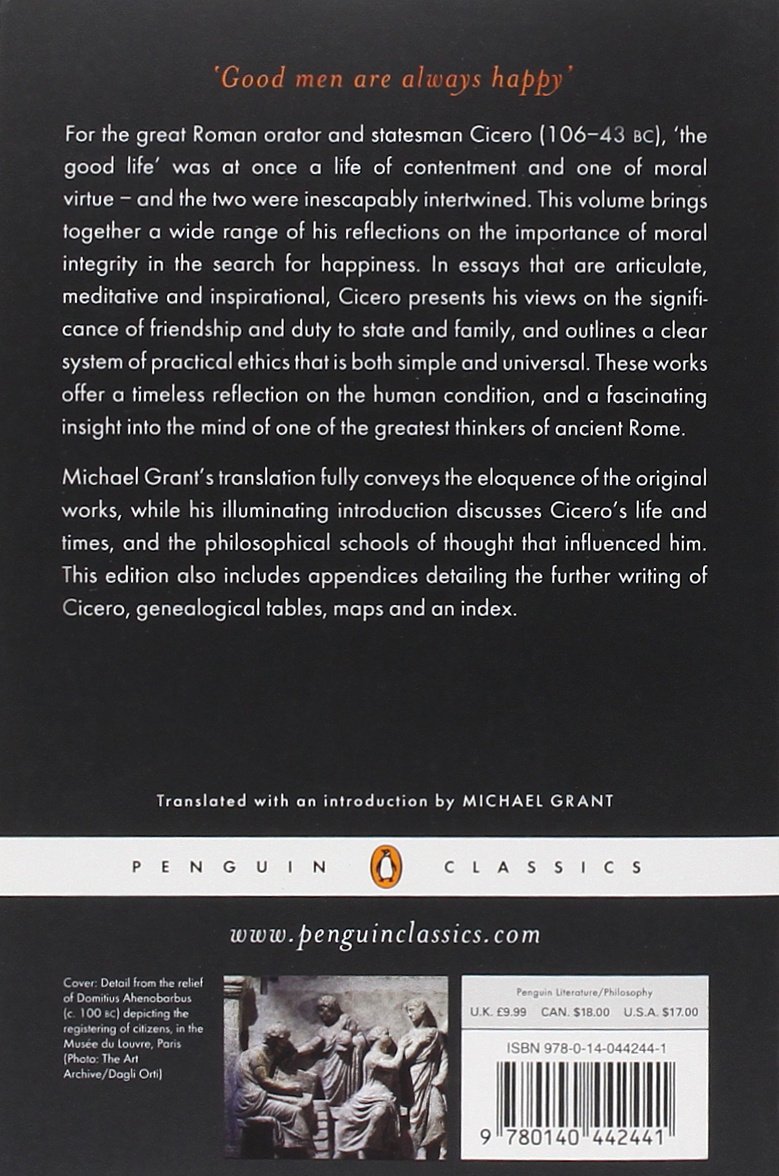 For the great Roman orator and statesman Cicero, 'the good life' was at once a life of contentment and one of moral virtue - and the two were inescapably intertwined. This volume brings together a wide range of his reflections upon the importance of moral integrity in the search for happiness. In essays that are articulate, meditative and inspirational, Cicero presents his views upon the significance of friendship and duty to state and family, and outlines a clear system of practical ethics that is at once simple and universal. These works offer a timeless reflection upon the human condition, and a fascinating insight into the mind of one of the greatest thinkers of Ancient Rome.