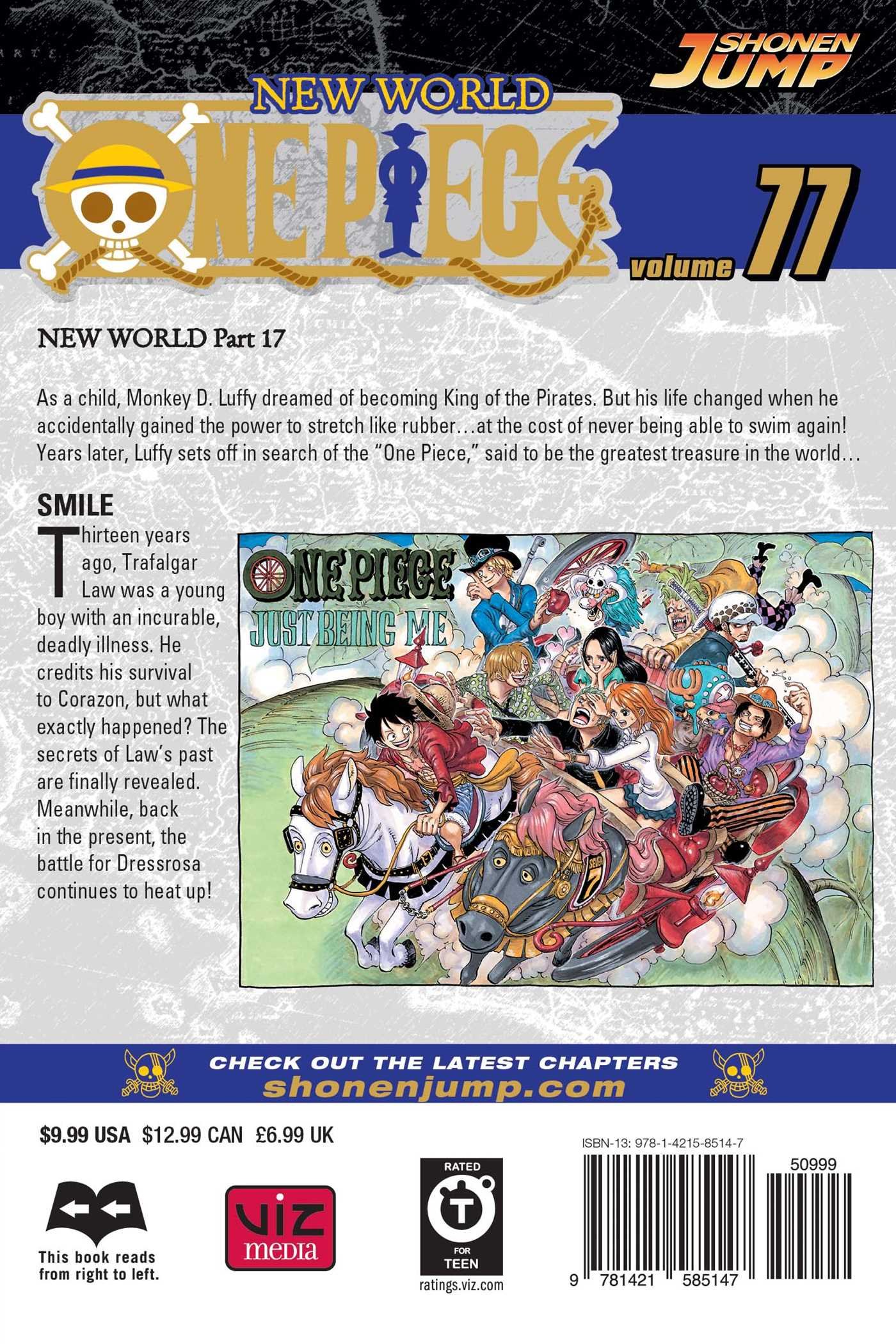 The secrets of Trafalgar Law's past are revealed as we flash back to thirteen years in the past. Just how did Law gain his devil fruit powers? Meanwhile, in the present, the battle for Dressrosa heats up as the Straw Hat pirates face off against the Doflamingo family!