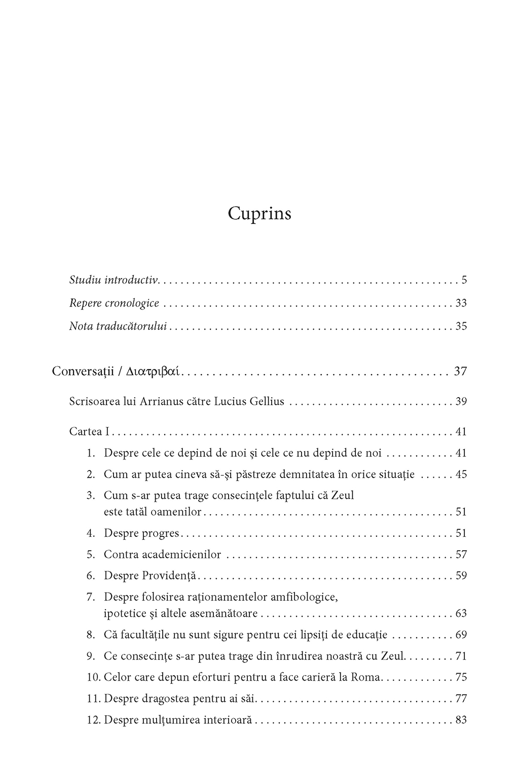 „Considerat alături de Seneca și Marcus Aurelius cel mai de seamă reprezentant al ultimei perioade a stoicismului, numită și «stoicismul imperial», Epictet face parte din categoria filosofilor care, în ciuda faptului că nu au lăsat nimic scris, au avut un impact deosebit asupra filosofiei antice. Dialogul cu maestrul, așa cum apare el în Conversaţii, se dovedea a fi un exerciţiu spiritual care se practica în grup și care invita la examenul de conștiinţă, la atenţie asupra sinelui, pe scurt, la faimosul «Cunoaște‑te pe tine însuţi!», la un raport de la sine la sine, care este fundamentul oricărui exerciţiu spiritual. În aceste dialoguri, să te cunoști pe tine însuţi reprezintă fie să te cunoști ca iubitor de înţelepciune, fie să descoperi în fiinţa ta ceea ce este cu adevărat al tău, fie să‑ţi cunoști adevărata stare morală, adică să‑ţi examinezi propria conștiinţă. Atunci când Epictet iniţiază un dialog cu un discipol, acesta nu devine un expozeu teoretic și dogmatic, ci un examen concret și practic, întrucât nu este vorba de expunerea unei doctrine, ci de îndrumarea interlocutorului spre o atitudine mentală. Dovedindu‑se un adevărat exerciţiu spiritual, dialogul cu Epictet îl conduce – discret, dar sigur – la convertire pe interlocutorul său, cu condiţia ca acesta să‑și dorească cu adevărat să dialogheze, adică să‑și dorească în mod real să găsească adevărul.” (Cristian Bejan)
