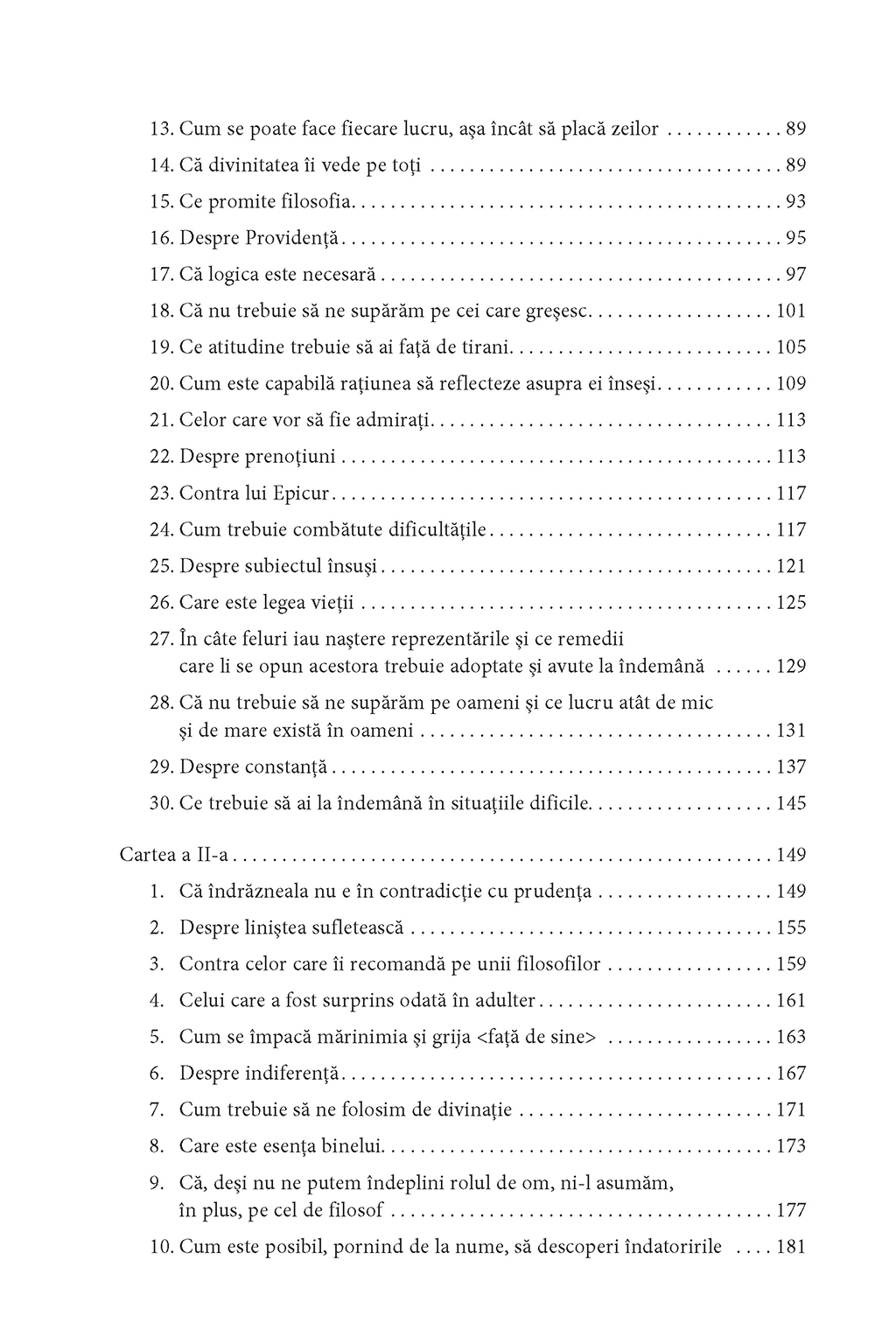 „Omule, tu ai o facultate de a alege, care în mod natural nu poate fi împiedicată și nici supusă vreunui obstacol. Acest lucru este scris aici, în măruntaie. Eu ţi-l voi demonstra mai întâi în ceea ce privește domeniul asentimentului. Poate oare cineva să te împiedice să-ţi dai asentimentul unui lucru adevărat? Nimeni. Poate oare cineva să te forţeze să accepţi falsul? Nimeni. Vezi că în acest domeniu alegerea ta deliberată este de neîmpiedicat, nesupusă nici unui obstacol și lipsită de capcane. Ei bine, în domeniul dorinţei și al impulsului, lucrurile stau altfel? Cine poate să învingă un impuls, dacă nu un nou impuls? Cine poate să învingă o dorinţă sau o aversiune, dacă nu o nouă dorinţă și o nouă aversiune?” (Conversaţii, I, 17, 21-24)