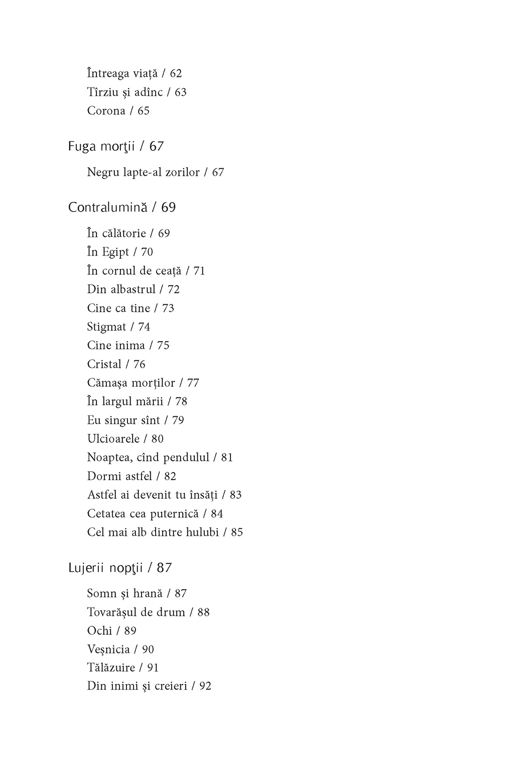 „Într-o poezie lirică scurtă, tulburător de densă, Celan vorbește despre «de pietre scrisele umbre». Literatura modernă este acționată de o necesitate de a explora această «litografie» și écriture d’ombres. Ele se află în afara clarității și a pasului următor al limbajului public. Pentru scriitorul de după Mallarmé, limba presează asupra sensului, aplatizîndu-l, distrugîndu-l, așa cum o vietate din adîncuri este distrusă cînd este adusă la lumina zilei și la presiunile reduse ale suprafeței mării. Dar ermetismul, pe măsură ce se dezvoltă de la Mallarmé la Celan, este una din acțiunile cele mai radicale împotriva limbii din literatura modernă.” (George Steiner)