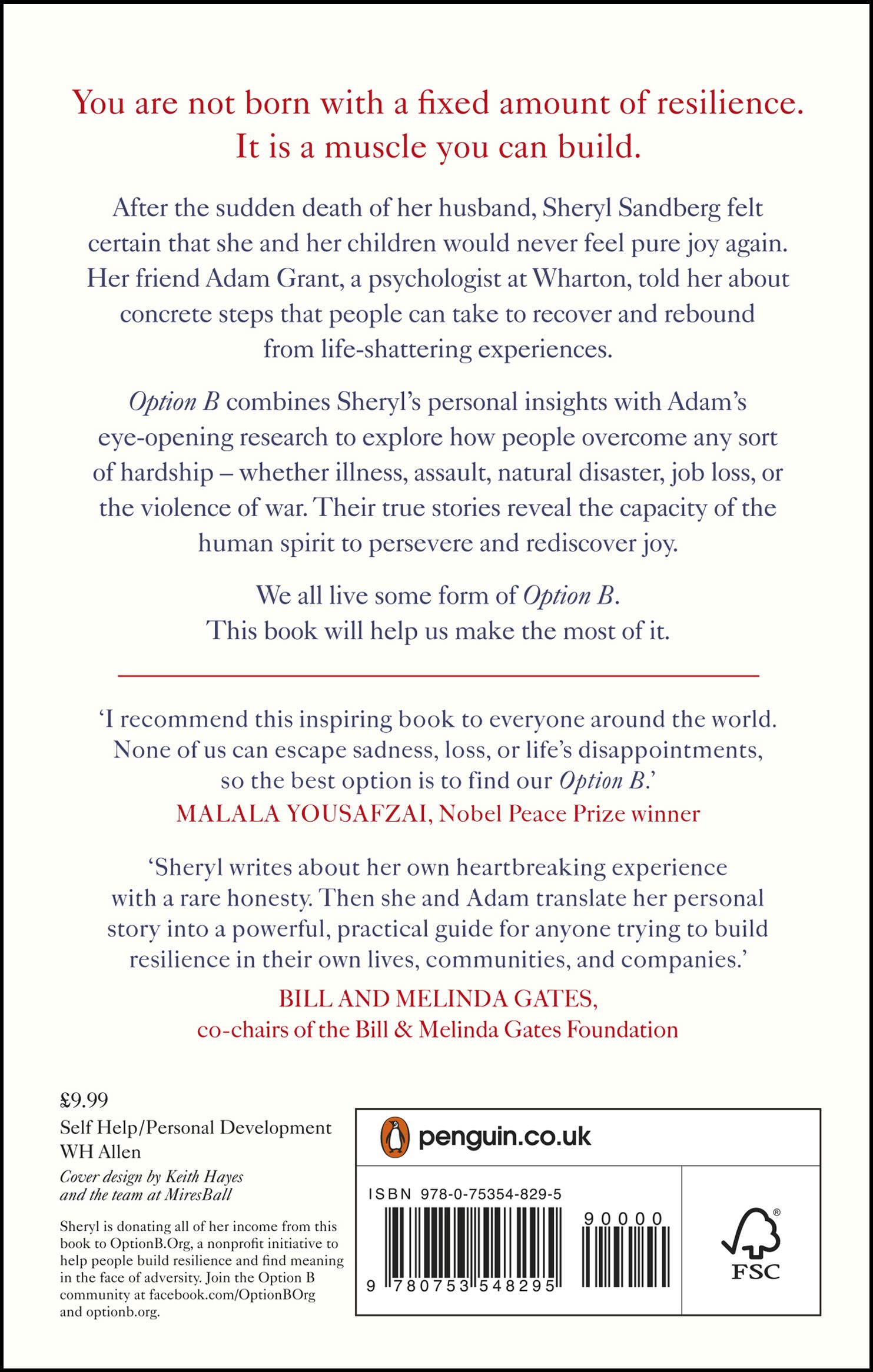 Thoughtful, honest, revealing and warm, OPTION B weaves Sandberg’s experiences coping with adversity with new findings from Adam Grant and other social scientists. The book features stories of people who recovered from personal and professional hardship, including illness, injury, divorce, job loss, sexual assault and imprisonment. These people did more than recover―many of them became stronger.