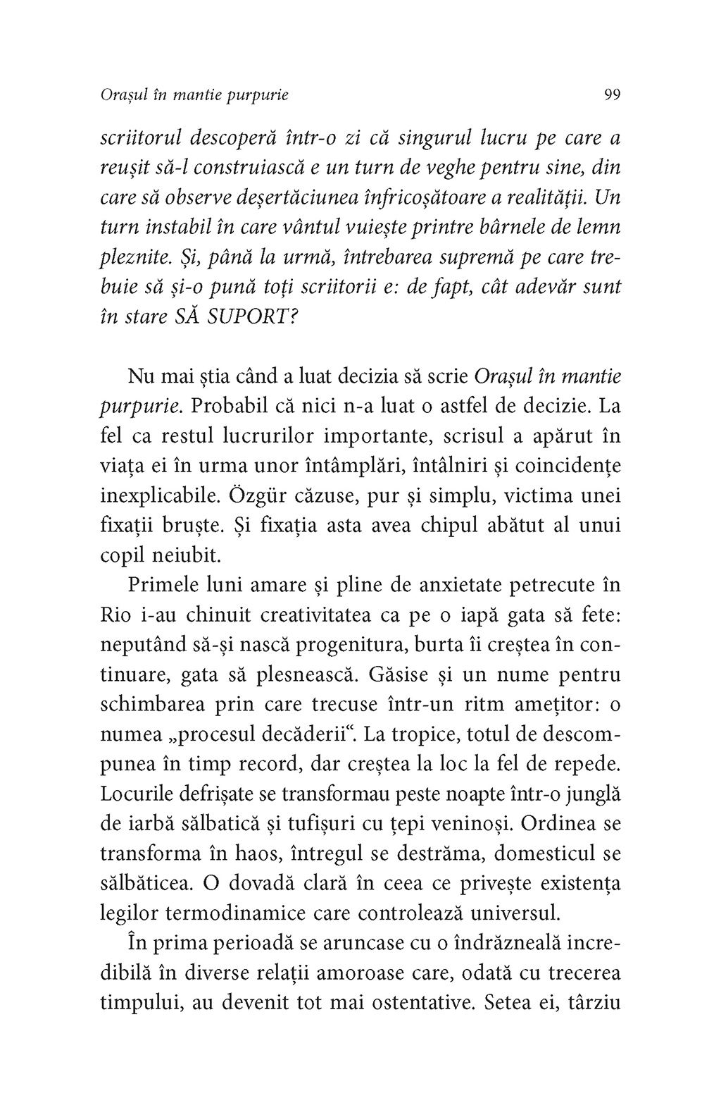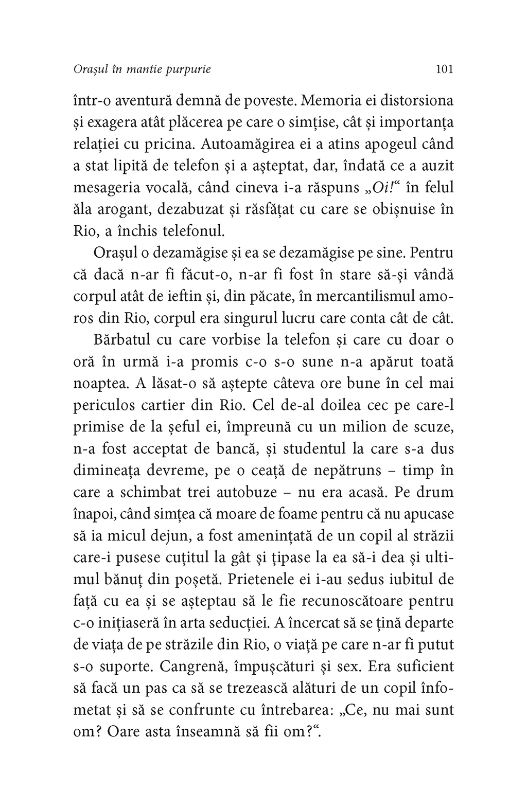 „Singură, săracă şi înfometată, consolarea lui Özgür este scrisul şi îşi jură că va rămîne în Rio pînă va face dreptate oraşului în cartea ei, Oraşul în mantie purpurie, care devine astfel un roman în roman.” (Publishers Weekly)
