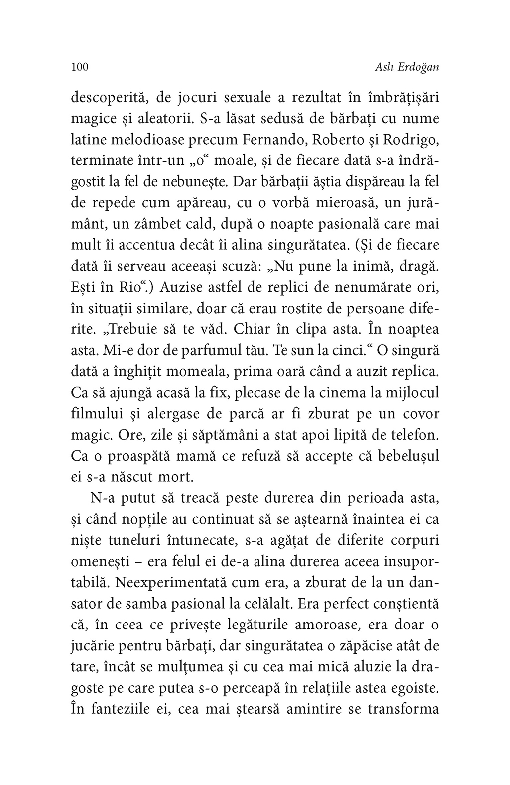 „Aslı Erdoğan delimitează fără greş distanţa dintre protagonistă şi oraşul străin, cu străzile braziliene care domină oraşul, cu sălbăticia romantică a favelelor, cu dragostea lor de viaţă, cu trăirile violente şi dezgustul care le domină.” (Le Monde)