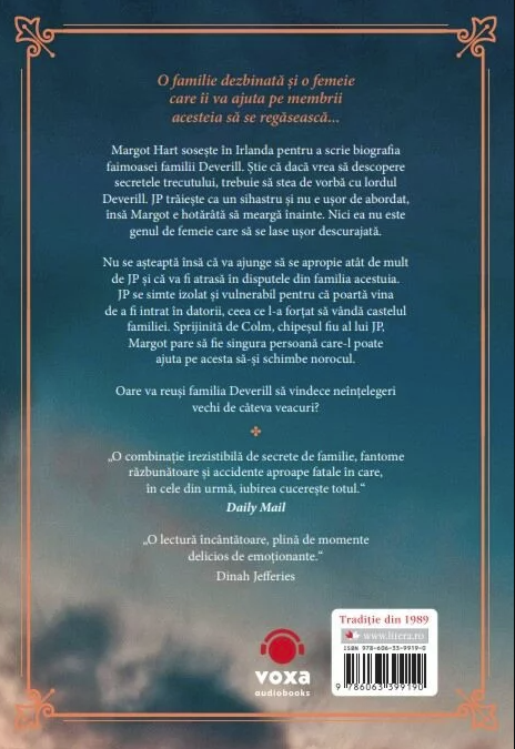 Margot Hart sosește în Irlanda pentru a scrie biografia faimoasei familii Deverill. Știe că dacă vrea să descopere secretele trecutului, trebuie să stea de vorbă cu lordul Deverill. JP trăiește ca un sihastru și nu e ușor de abordat, însă Margot e hotărâtă să meargă înainte. Nici ea nu este genul de femeie care să se lase ușor descurajată.
