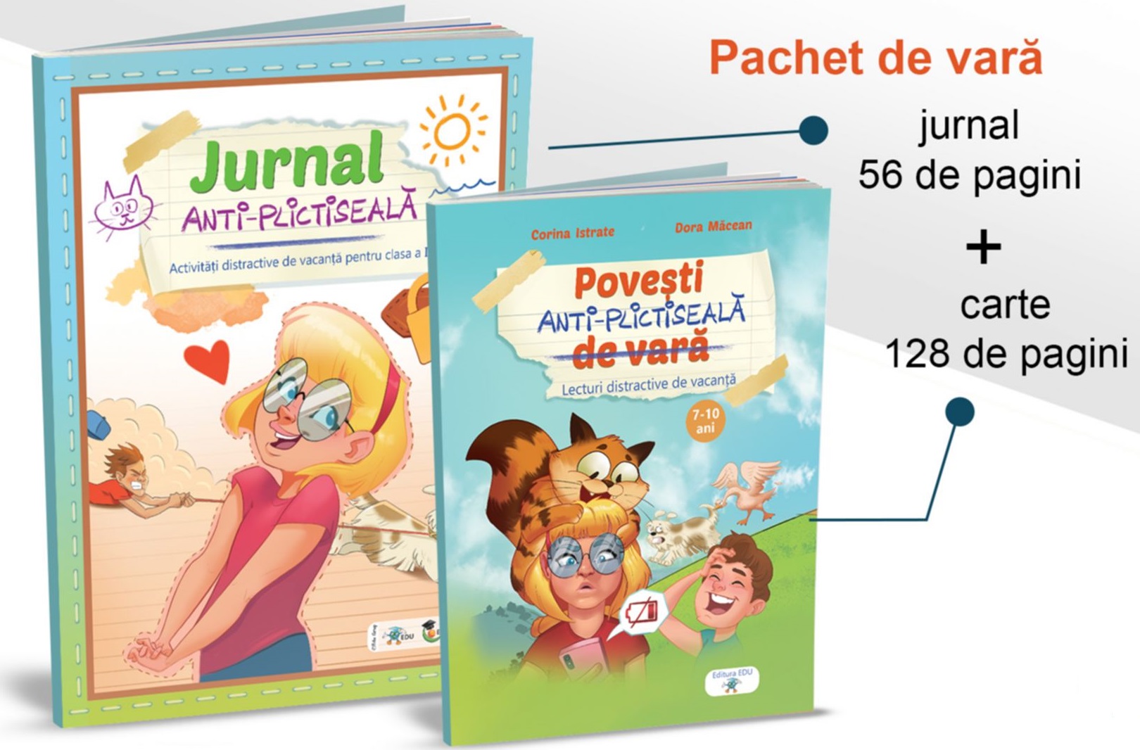 Vacanța de vară va fi mult mai amuzantă alături de Pachetul de vară, alcătuit dintr-o carte cu Povești anti-plictiseală (128 de pagini color, mărime 20,5 x 13 cm) și Jurnalul anti-plictiseală (56 de pagini). Se adresează elevilor din clasa a II-a.