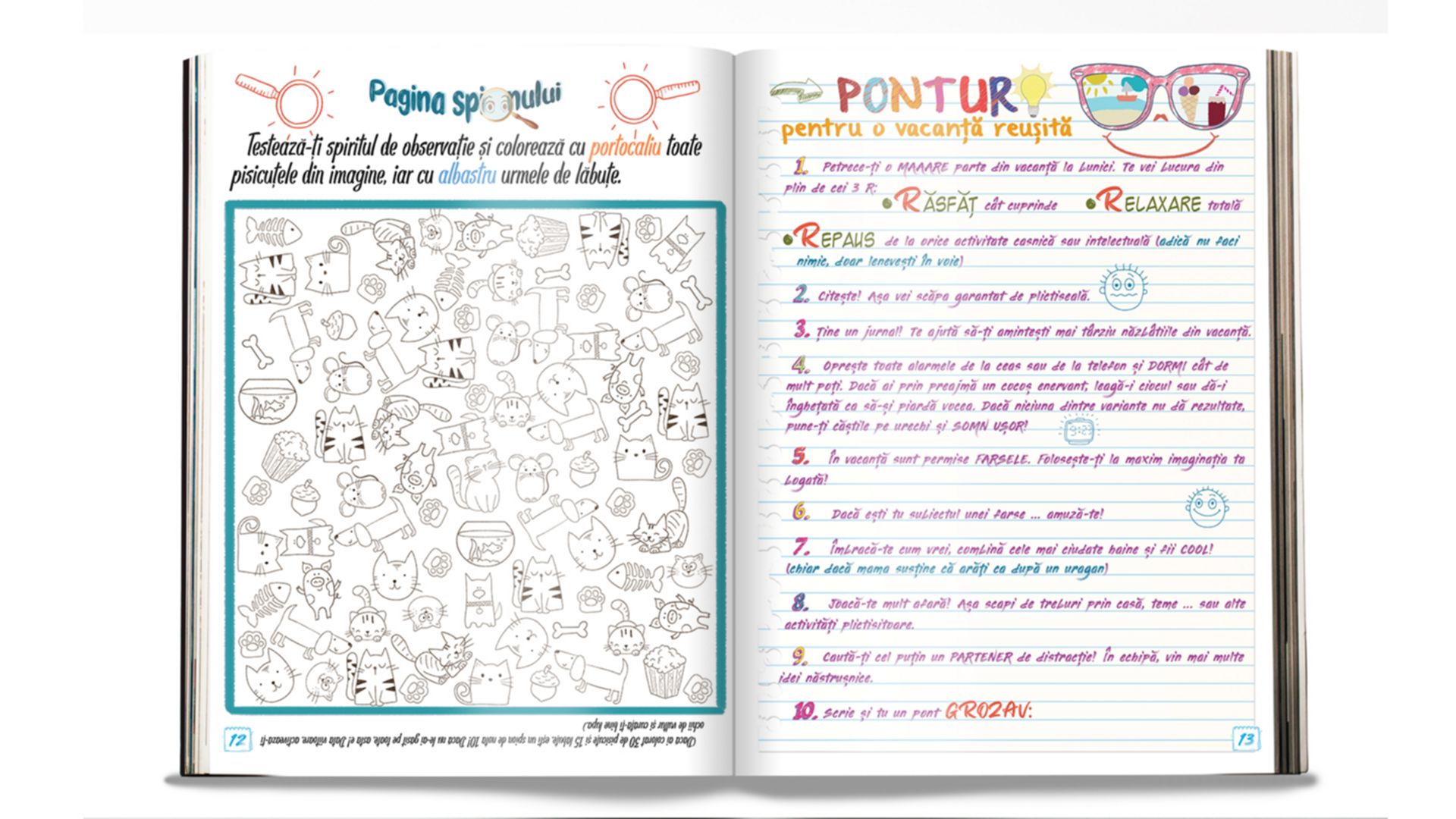 După o lectură atât de amuzantă, elevii sunt invitați să se delecteze cu un Jurnal anti-plictiseală, plin de jocuri și activități recreative, precum și o mulțime de ponturi pentru o vacanță reușită.