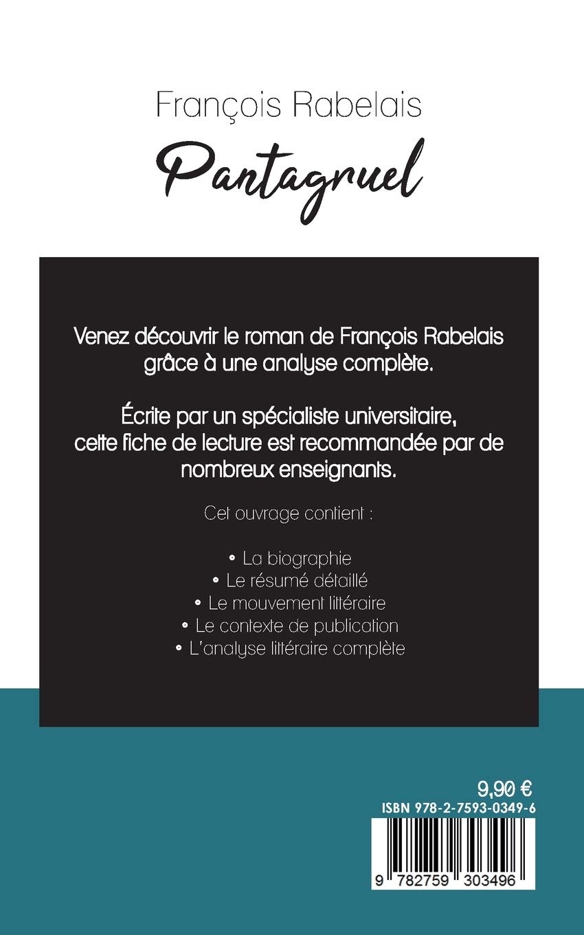 Venez découvrir le roman de Rabelais grâce à une analyse littéraire de référence ! Écrite par un spécialiste universitaire, cette fiche de lecture est recommandée par de nombreux enseignants. Cet ouvrage contient la biographie de l'écrivain, le résumé détaillé, le mouvement littéraire, le contexte de publication de l'oeuvre et l'analyse complète.